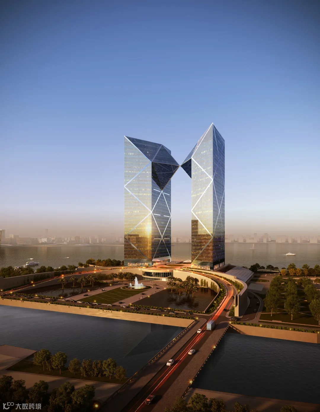 广西南宁中银金融中心项目贯彻着贝氏一贯的独特设计风格。两座高度不同的塔楼,由低矮裙楼统一起来,晶莹的双层幕墙覆盖起其中较小塔楼的外立面。当夜幕降临时,将会变身为城市中一座发亮的水晶立方体,从建筑底部到顶部的整个立面形式协调统一,强调出建筑物纤细的垂直感。