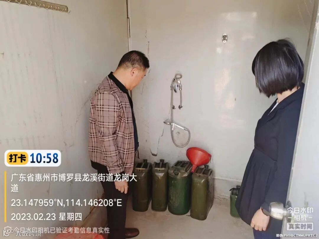 县环卫中心叶局、管理部刘股、工作组刘股检查车队安全生产工作。