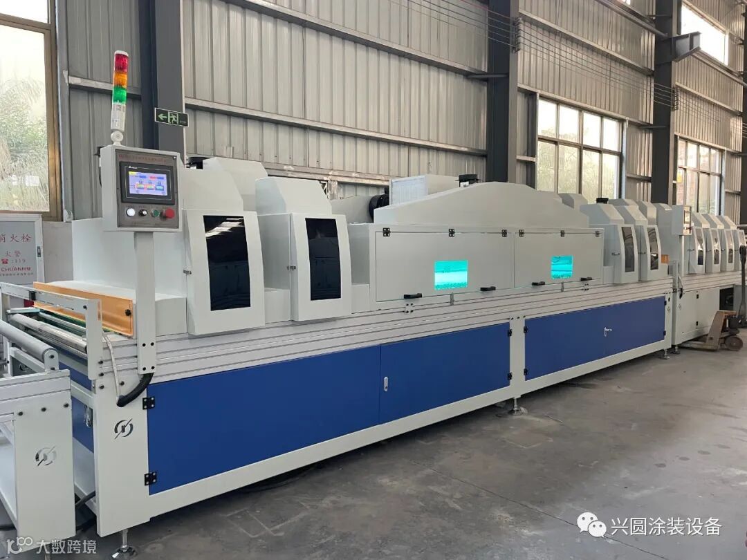 此种技术应用于平面装饰产品。在做好UV底漆的工件上,辊涂UV肤感面漆,经过LED的深层固化,超哑UV设备,常规UV固化设备,就可以得到肤感产品。