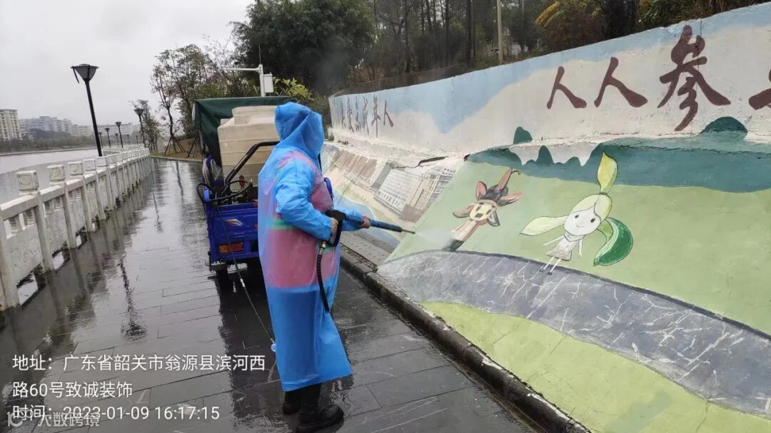 1、全面冲洗县城所有人行道,公园广场,公共设施等。