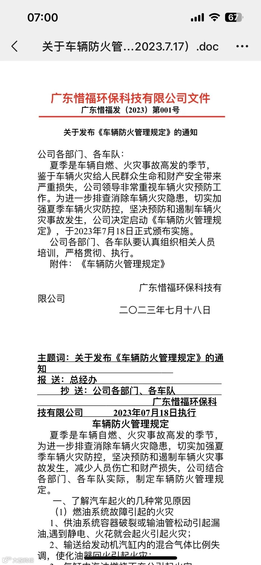 2、关于落实《车辆防火管理规定》的会议,会议中要求: