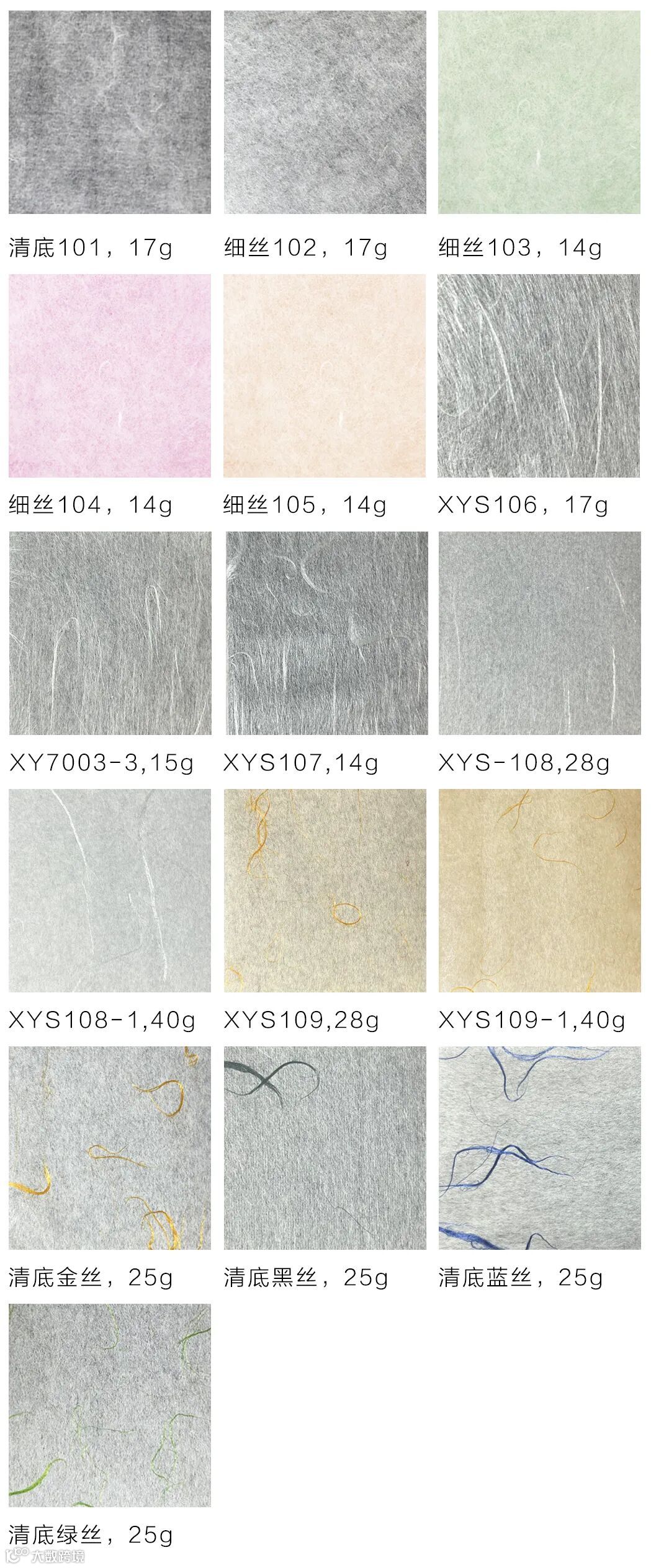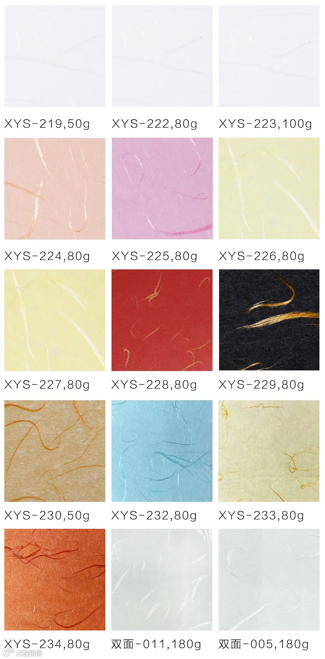 彩丝纸采用古法精制而成,纸张纹路细腻自然,充满灵气,古朴与时尚,呈现出亲近自然,去噪安心,弃污浊而智远的气质。纸张特性抗撕裂度、耐久度性较高,不易变色及老化。适用于折纸,包装纸,裱纸,软包书封面,隔页,个性化打印,标签贴纸等。