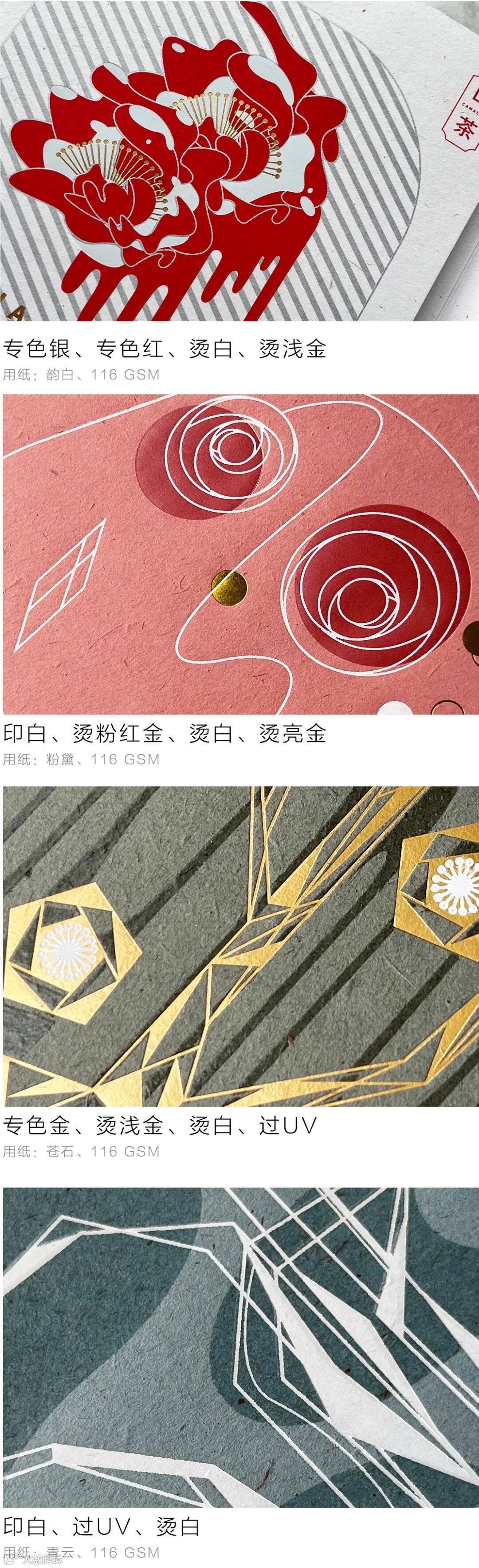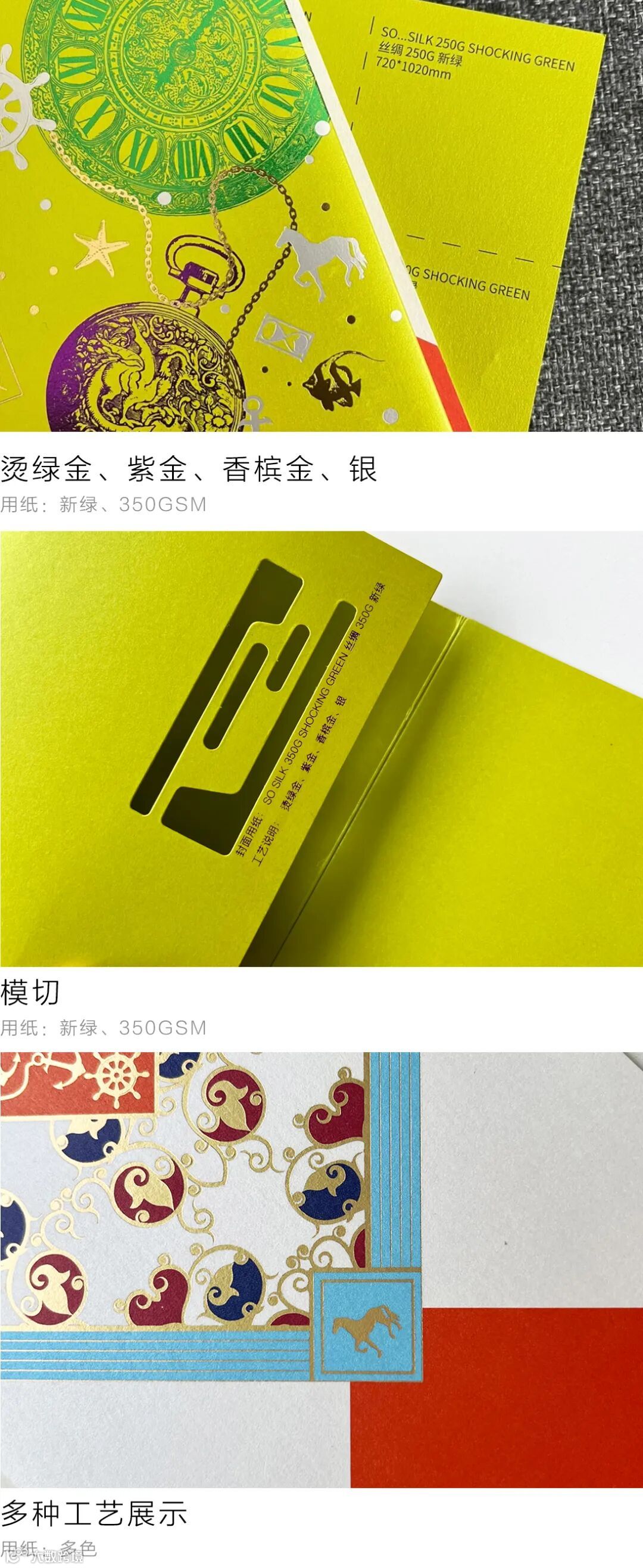 丝绸纸是产自意大利cordenons的一款顶级丝质纸。底纸使用染色同色,因此纸张同底同色无露白的问题。同时加入了丝绸浆和高档涂层,纸张表面呈现出丝绸一样的丝滑触感,以及柔和的丝光光泽,色彩均匀,层次感分明,与中国传统丝绸结合的特质,凸显其独特的魅力。