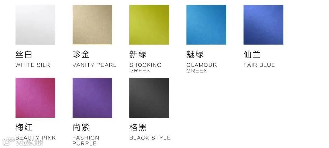 星梦是全球第一款金属珠光纸,产自90年代末,属于顶级金属纸。纸张使用同色底纸加上高档珠光涂层生产,同底同色涂层无露白问题。颜色多,且深色系是市场上的稀缺色。纸张在不同角度观察可呈现珠光、金属、彩虹或闪耀的独特效果。胶印效果甚佳,快干,烫金牢固不掉。