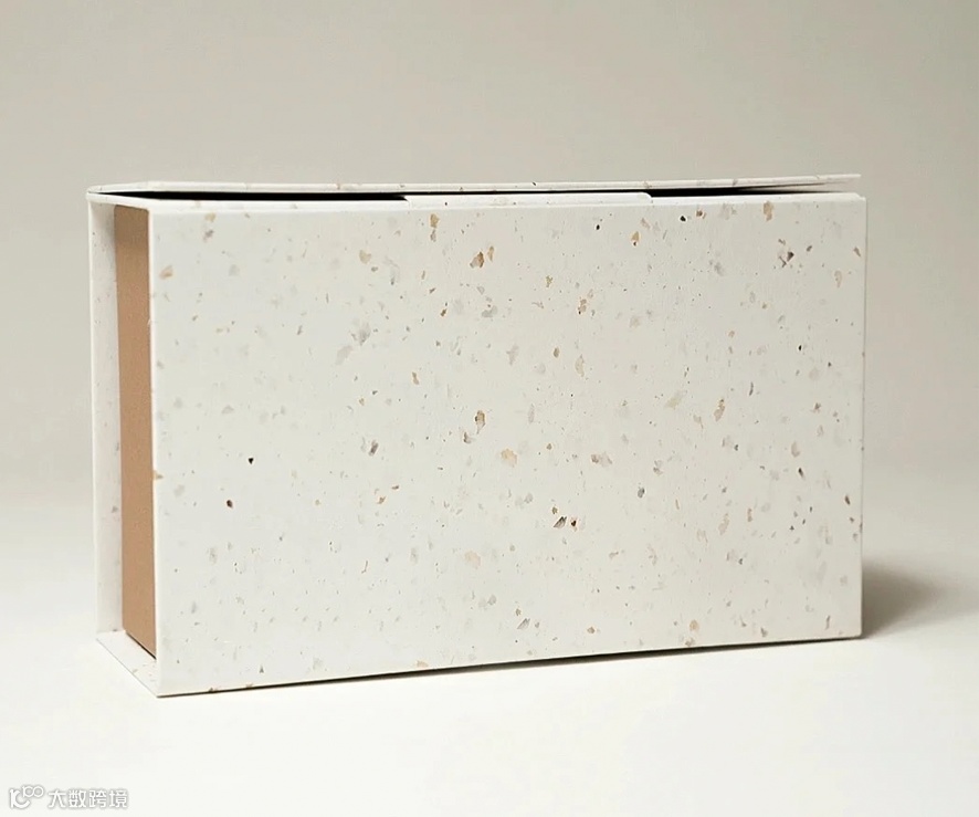 皮革再生纸由皮革制造工艺的废弃残渣制成,荣获“欧洲环保大奖”。皮革再生纸内含25%的真皮纤维,此外又添加40% 的回收再生纸浆,使用EKO energy生产,是100%可回收和可生物降解的纸张,其表面可见的残留物赋予纸张独特的外观和手感,非常适合豪华印刷和包装。
