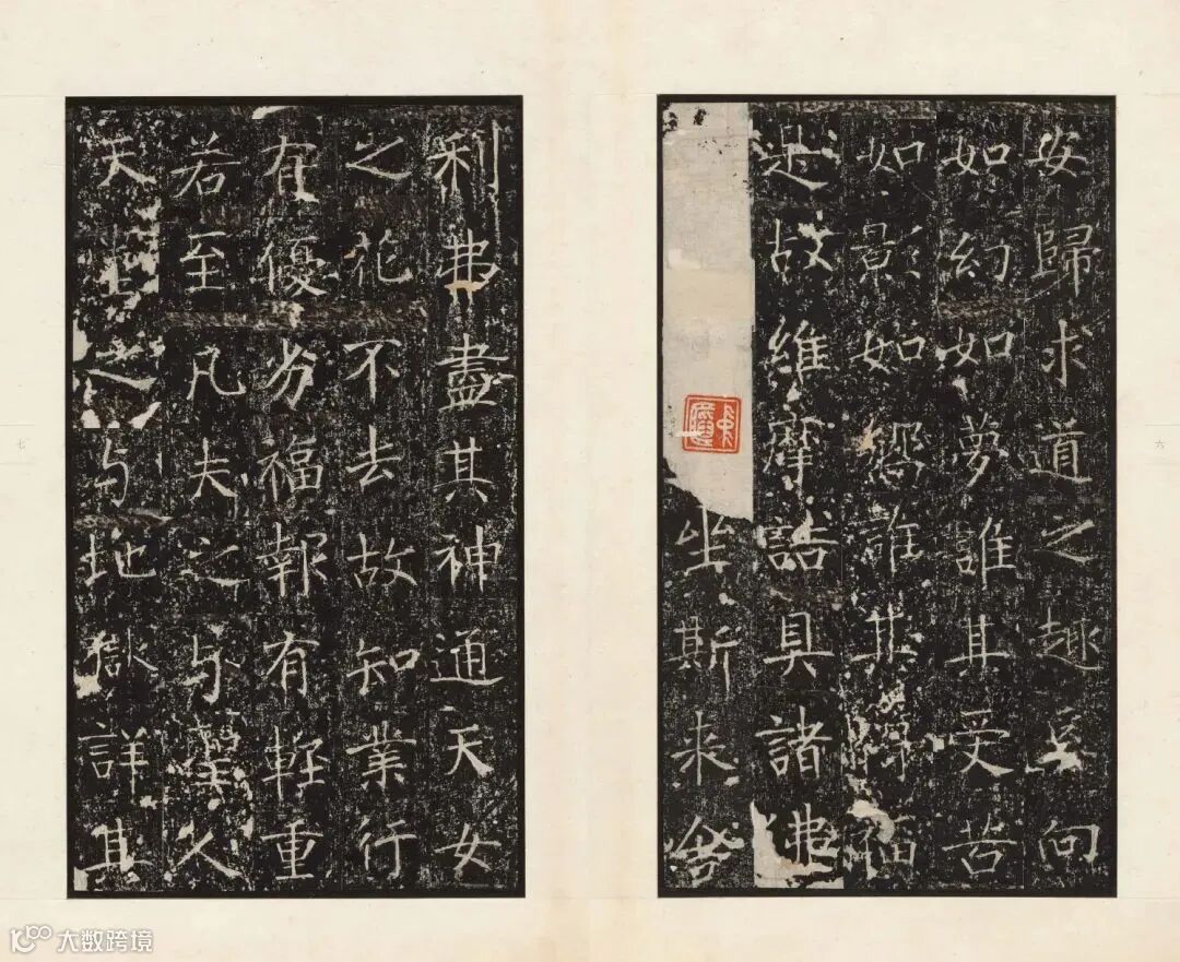 清康有为在《广艺舟双楫》中说:”隋碑渐失古意,体多闿爽,绝少虚和高穆之风。一线之延,惟有《龙藏》。《龙藏》统合分、隶,并《吊比干文》《郑文公》《敬使君》《刘懿》《李仲璇》诸派,荟萃为一,安静浑穆,骨鲠不减曲江,而风度端凝,此六朝集成之碑,非独为隋碑第一也。虞、褚、薛、陆,传其遗法,唐世惟有此耳。中唐以后,斯派渐泯,后世遂无嗣音者,此则颜、柳丑恶之风败之欤!观此碑,真足当古今之变者矣。”