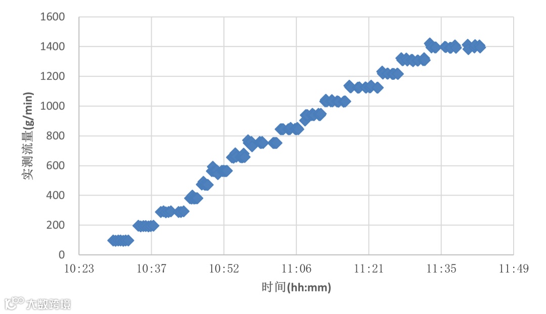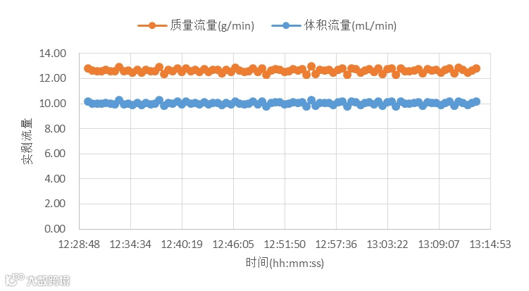 质量流量稳定在12.4-12.8g/min,与设置值一致