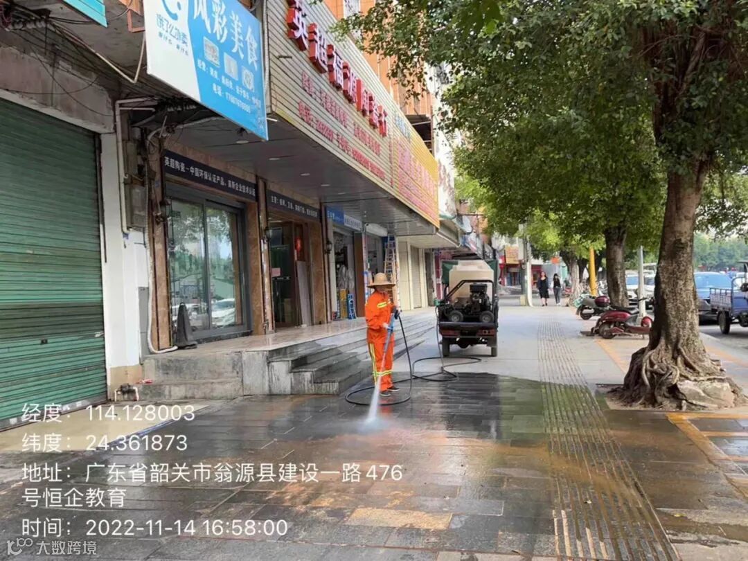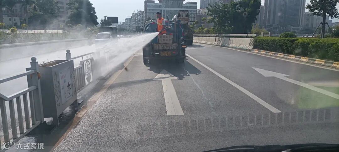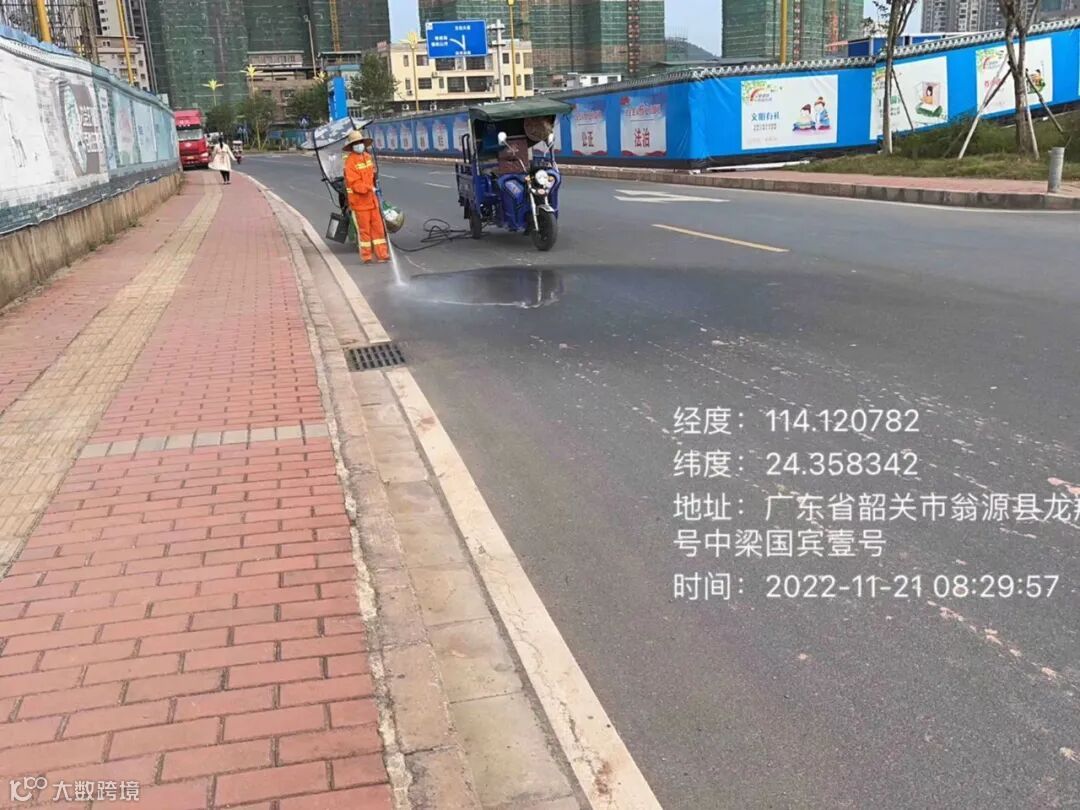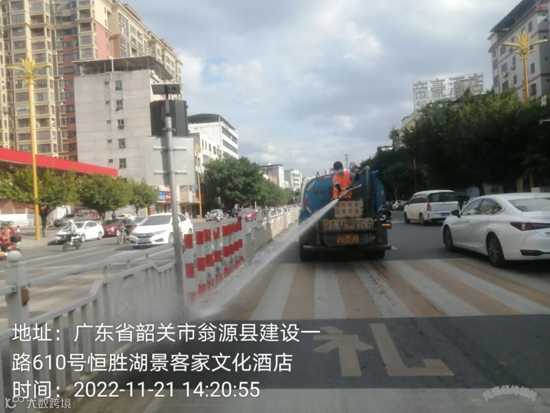 3、冲洗建设一二路中间护栏和各路口路沿。