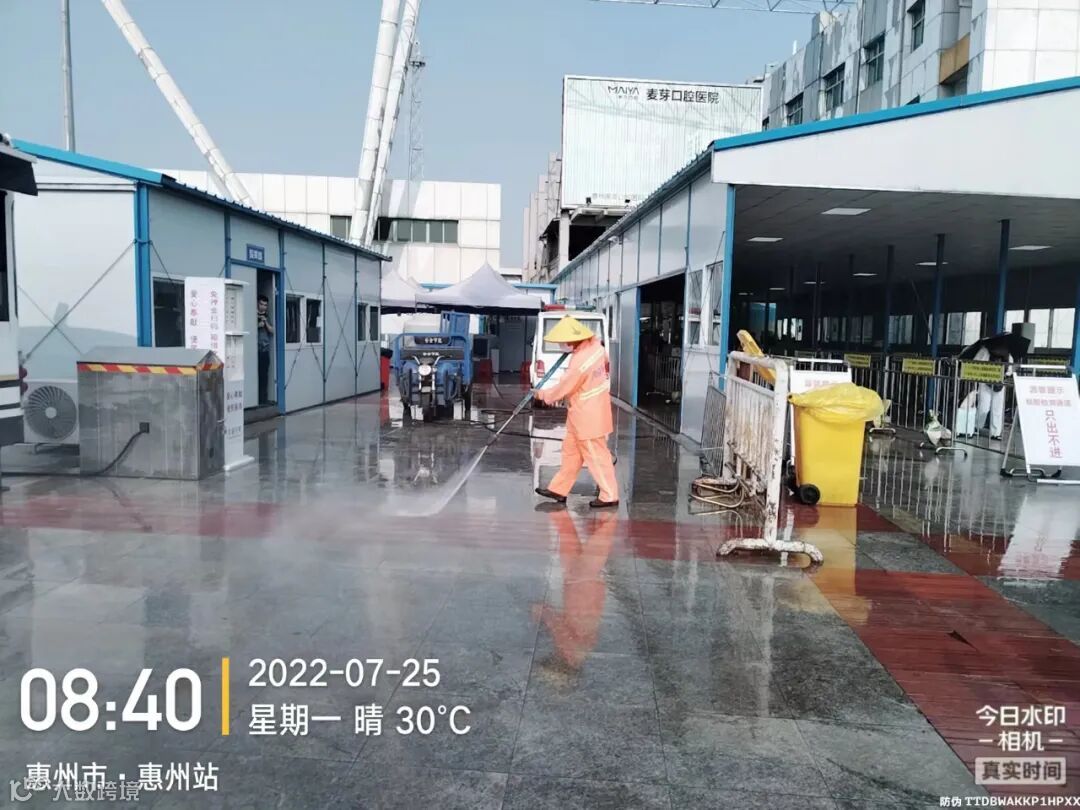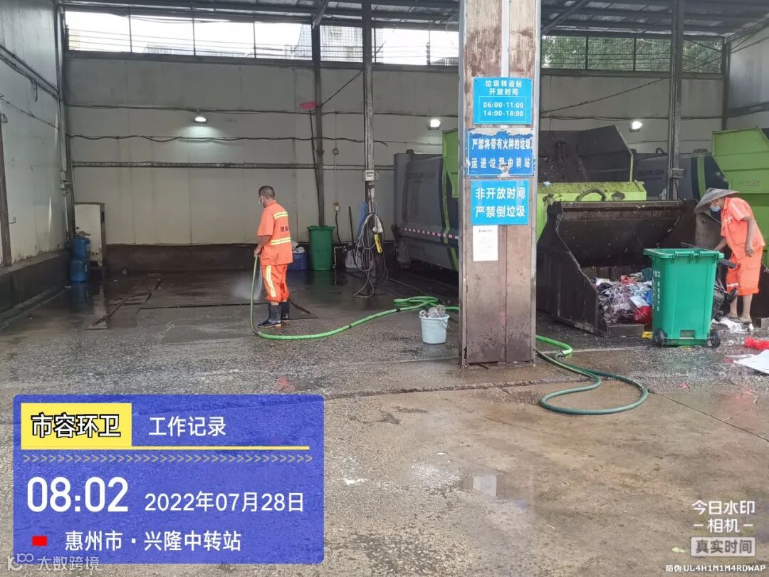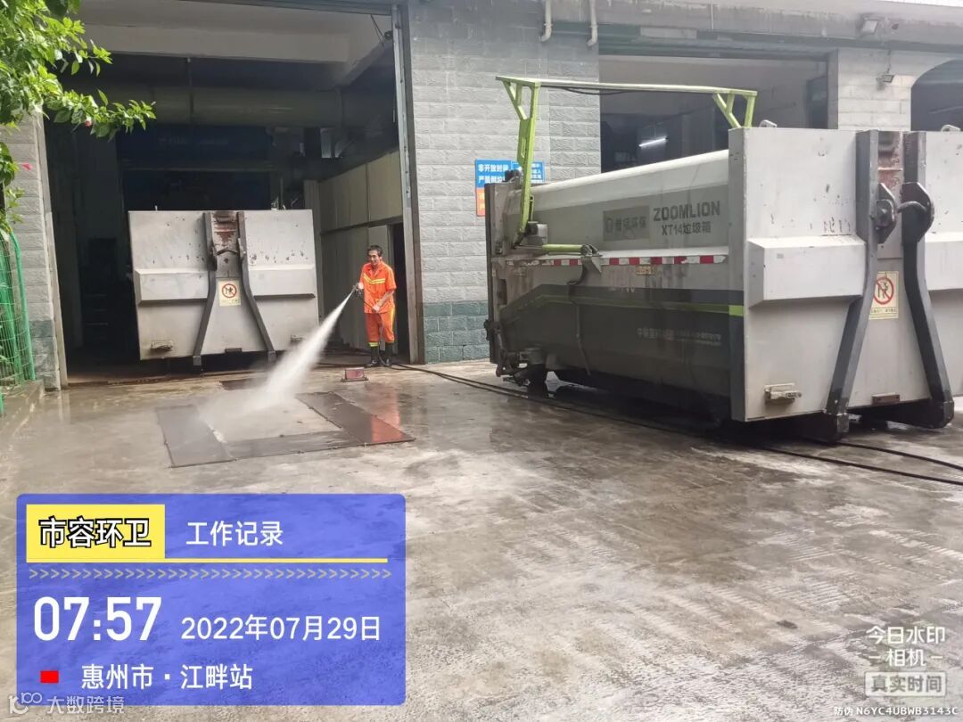 中转站/公厕日常作业及维护,每日两次以上高压冲洗并喷雾消毒站内外地面及箱体
