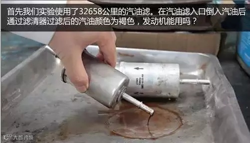 我们更换一个新的汽油滤清器做一个实验。从上图中我们可以看出添加进去的液体通过过滤后是非常的干 净,过滤效果非常的明显。通过对比,因为没有及时更换汽油滤可造成积碳、死火、动力下降、油耗增加等一系列问题,这些保养费用计算 起来有多伤?