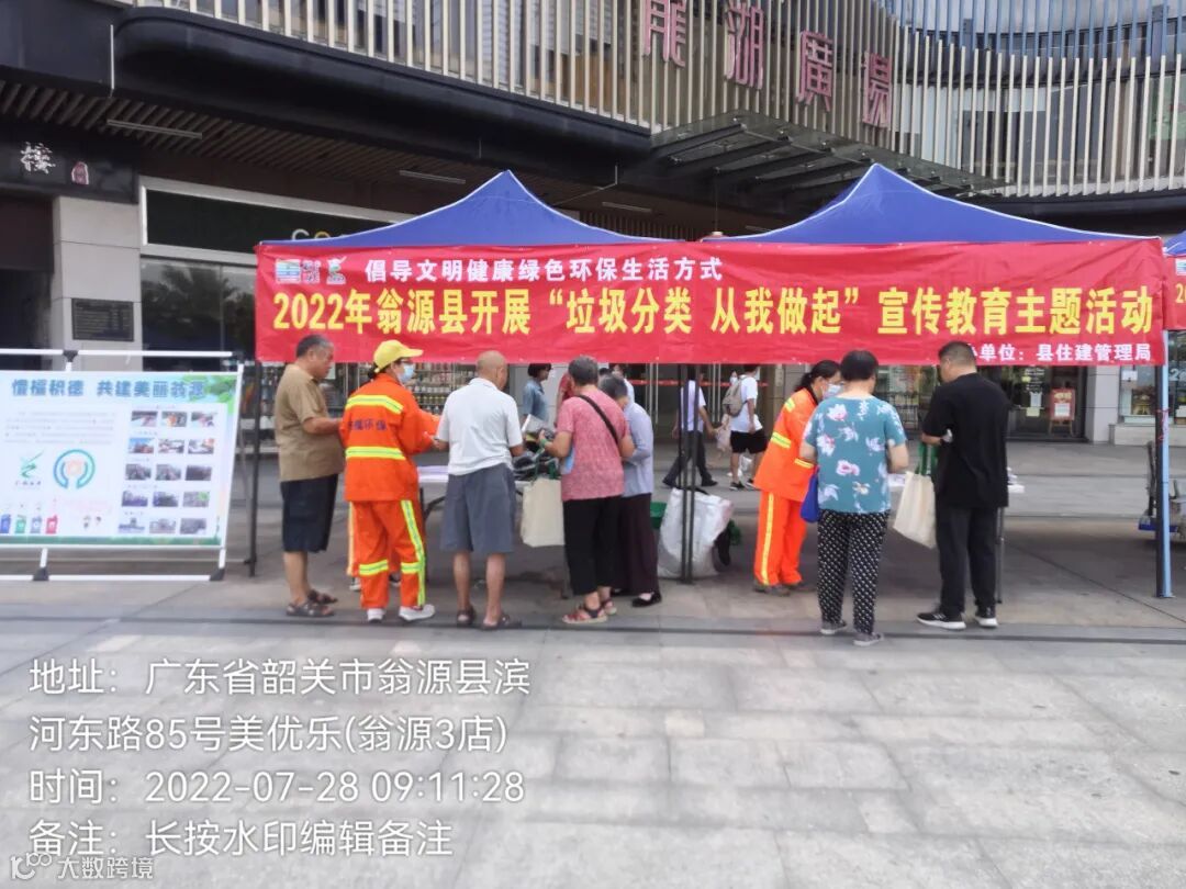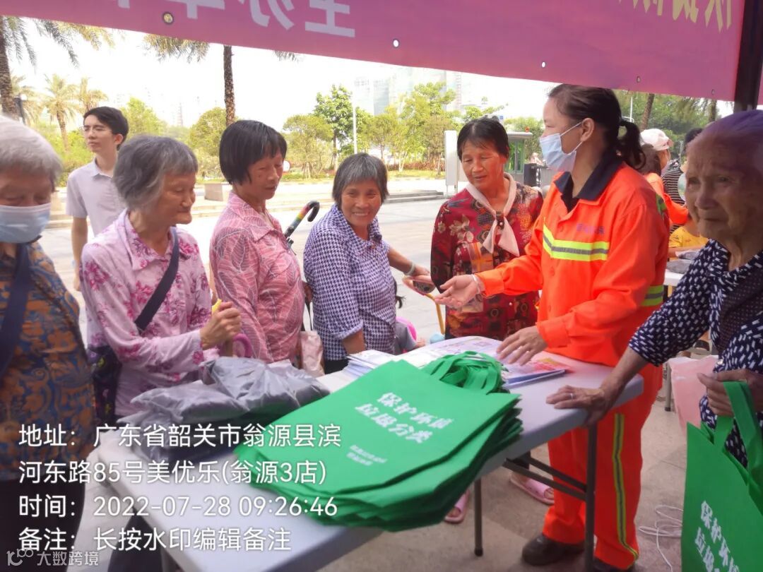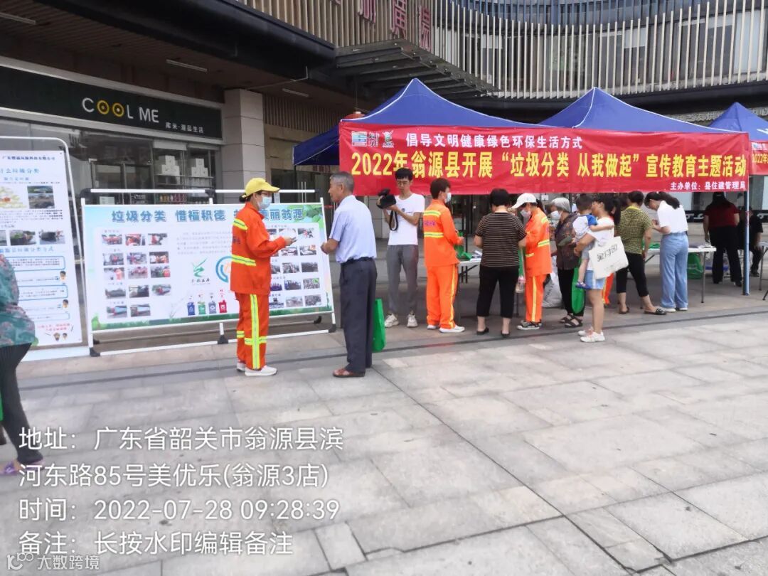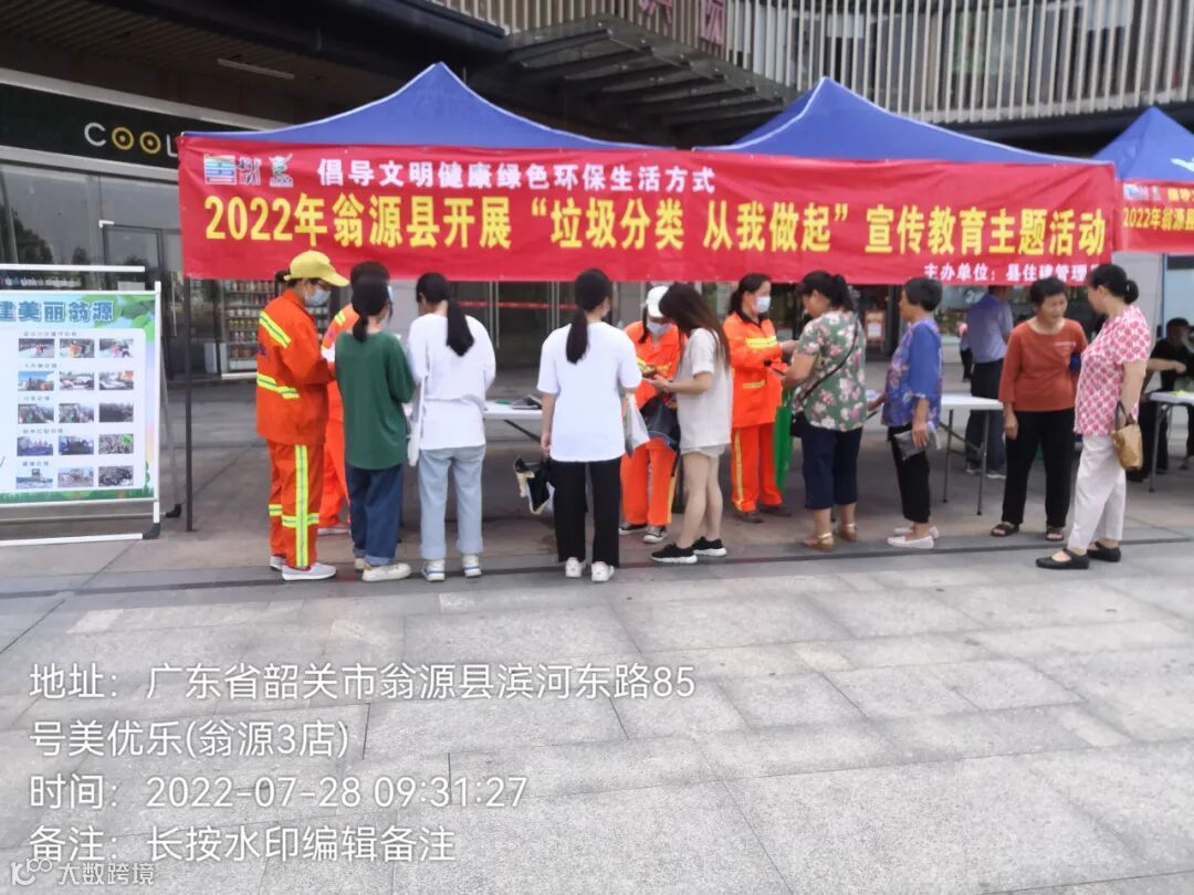 1、7月28号在龙湖广场开展翁源县“垃圾分类,从我做起”宣传教育主题活动,并在各小区守点宣传及劝导。