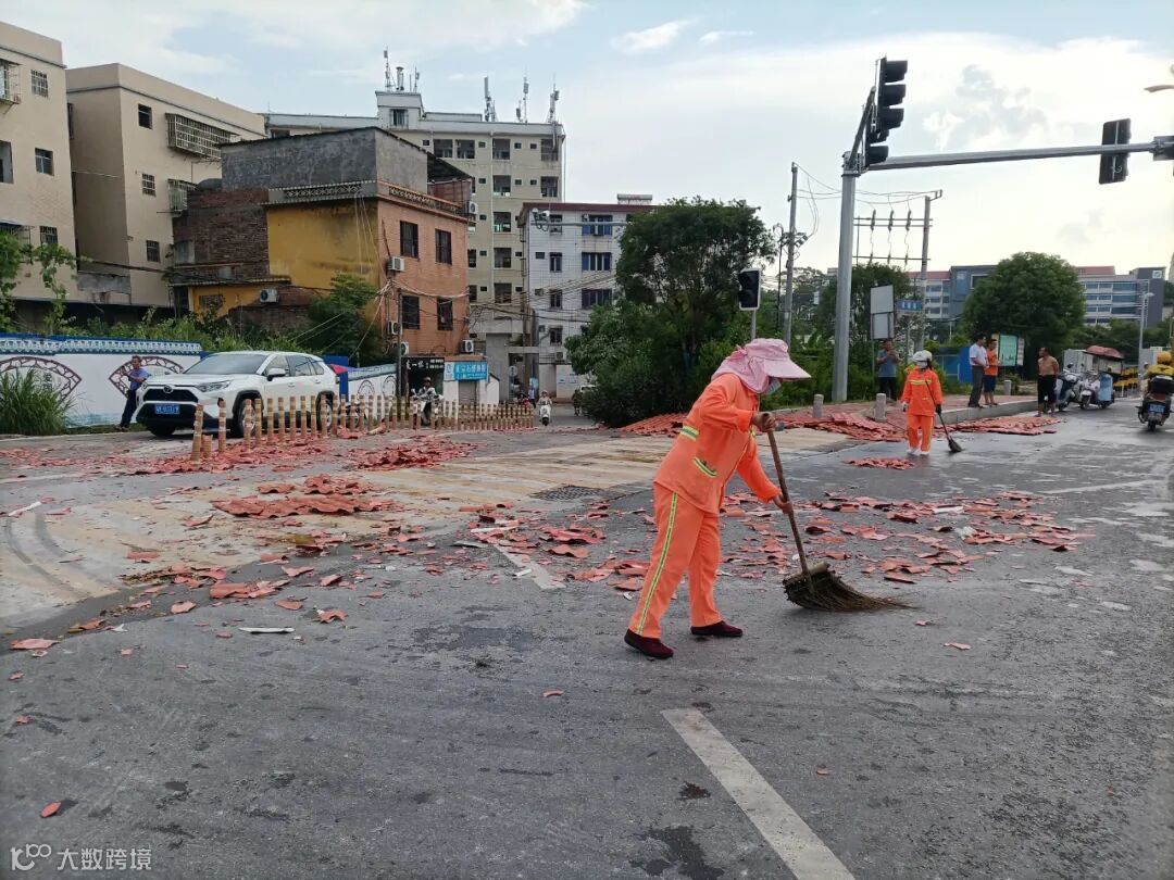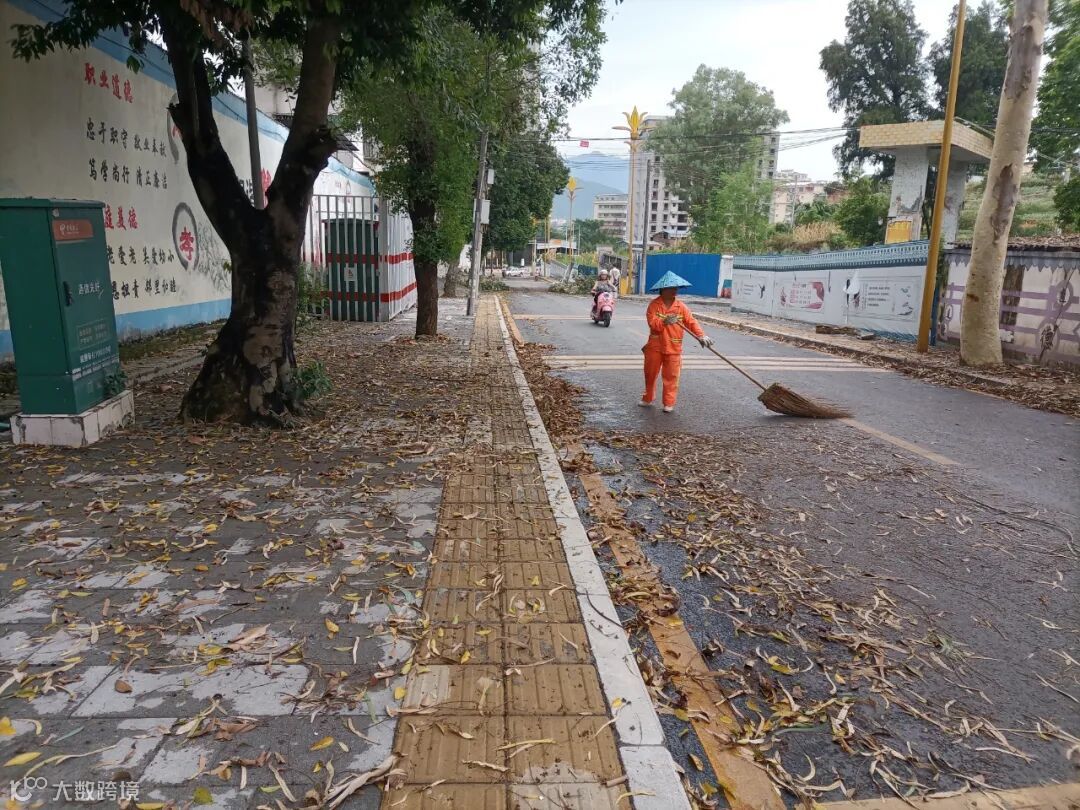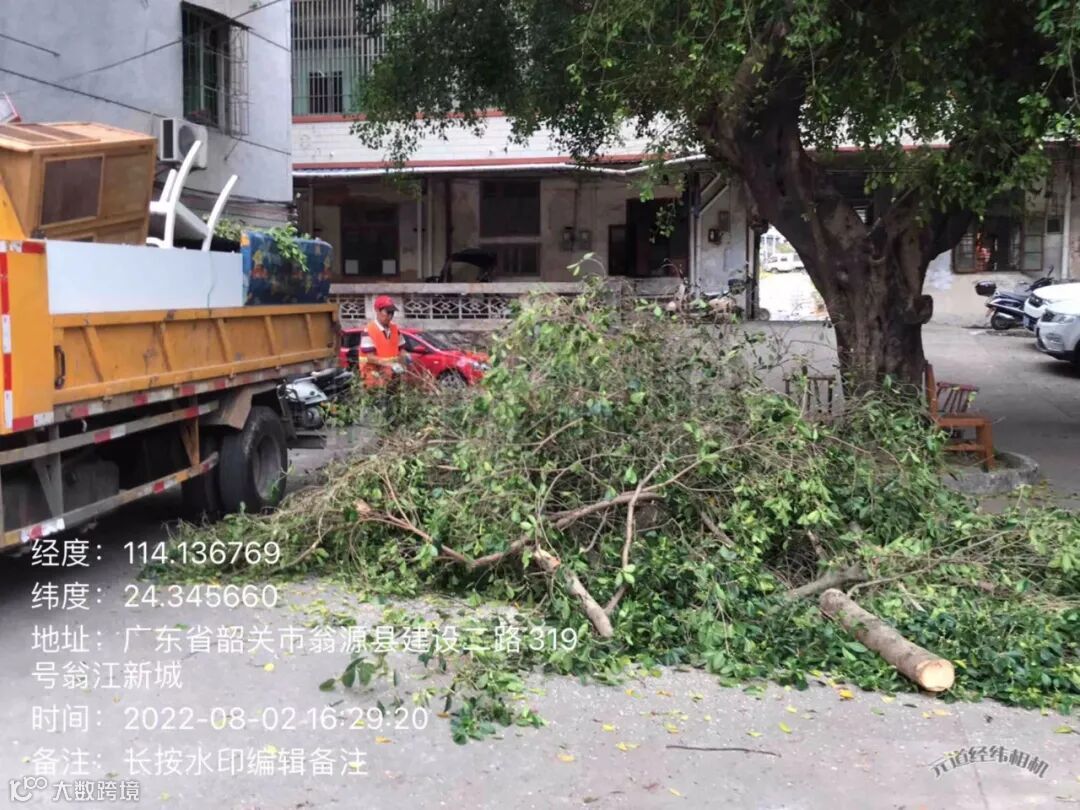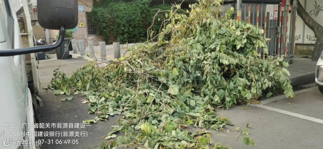3、清理突发台风后地面大量垃圾树叶树枝,杂物。