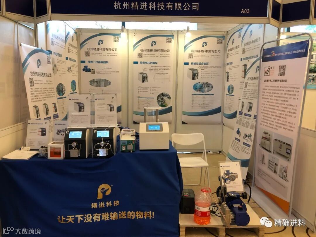 杭州精进科技有限公司作为本次会议主题的配套设备参展商,展示了精睿高压四氟泵、精睿哈氏合金泵、精睿三柱塞隔膜泵、精睿070齿轮泵等多款产品,为更多的企业提供更专业的进料服务。