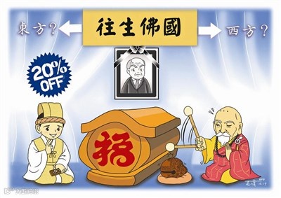 禅师就说:“往生西方极乐世界要十两银子,你要打八折,那只好让你父亲到东方世界去啦!”