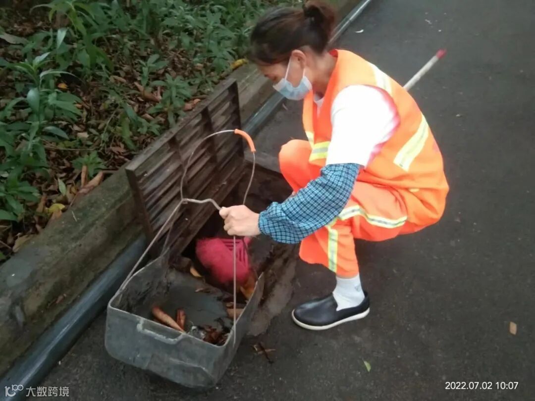 清理路面排水沟,下水道口,杂草,大量落叶