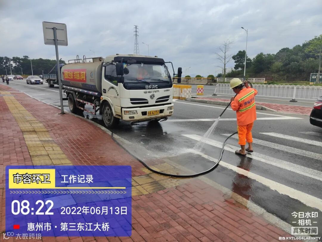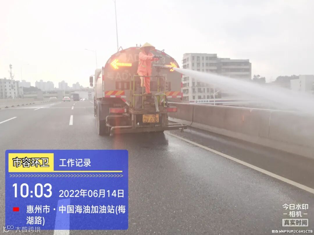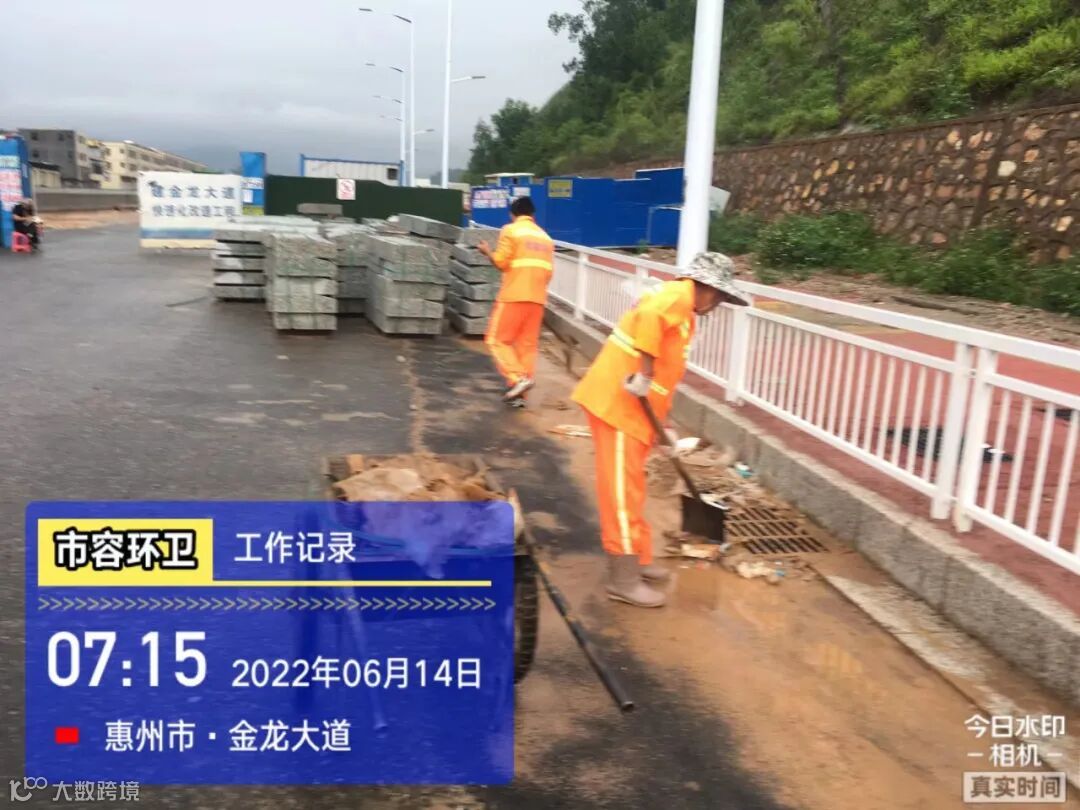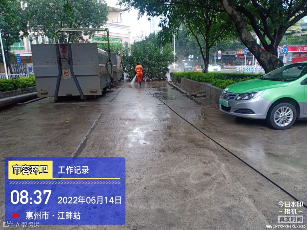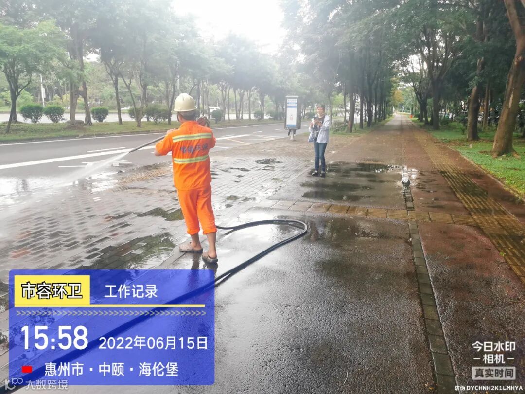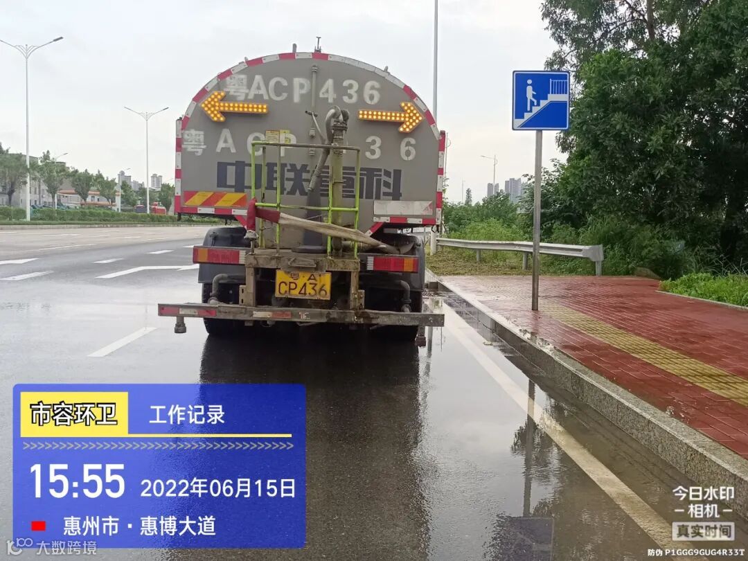 2、洗扫车队利用雨天强化冲洗路边沙及顽固污迹点,保障辖区环境整洁;