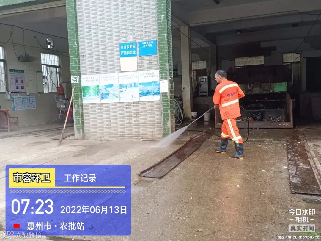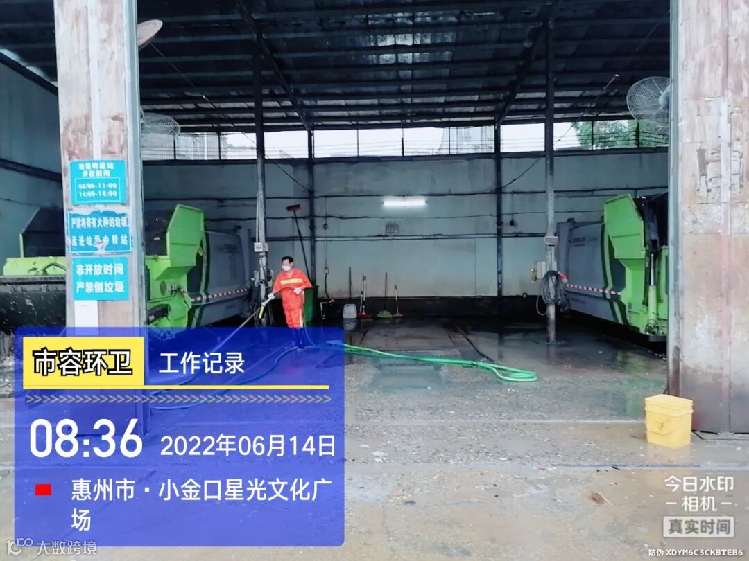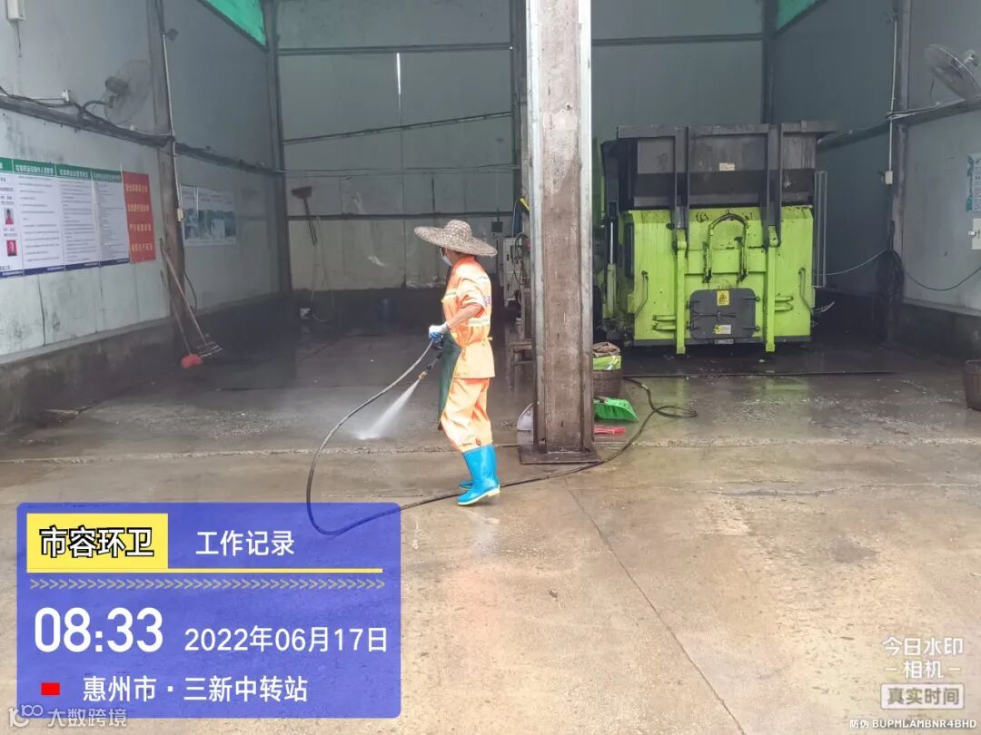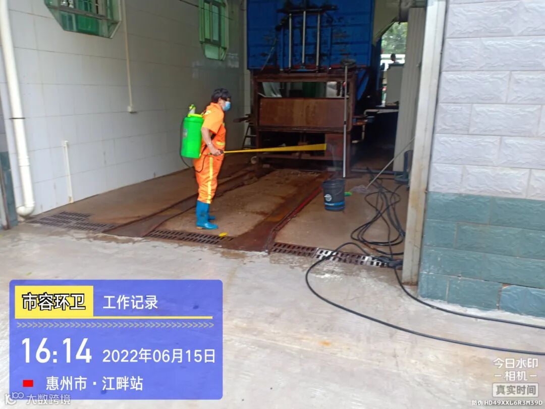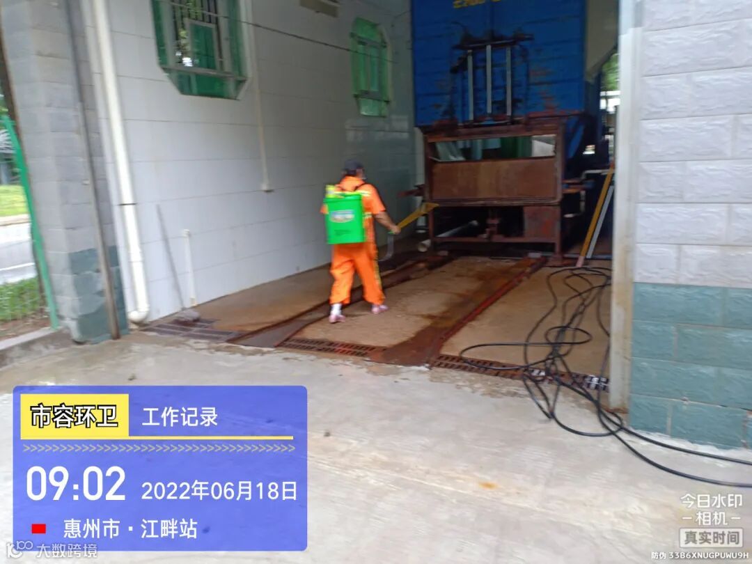 中转站/公厕日常作业及维护,每日两次以上高压冲洗并喷雾消毒站内外地面及箱体
