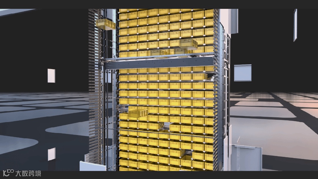 Flexibox 使用标准400×600mm的料箱,托盘可以承载多至9个料箱,配合三组操作口,整机最高可支持6个服务托盘同时运行。整机高度最高可以做到20米,轻松装下上千个料箱。