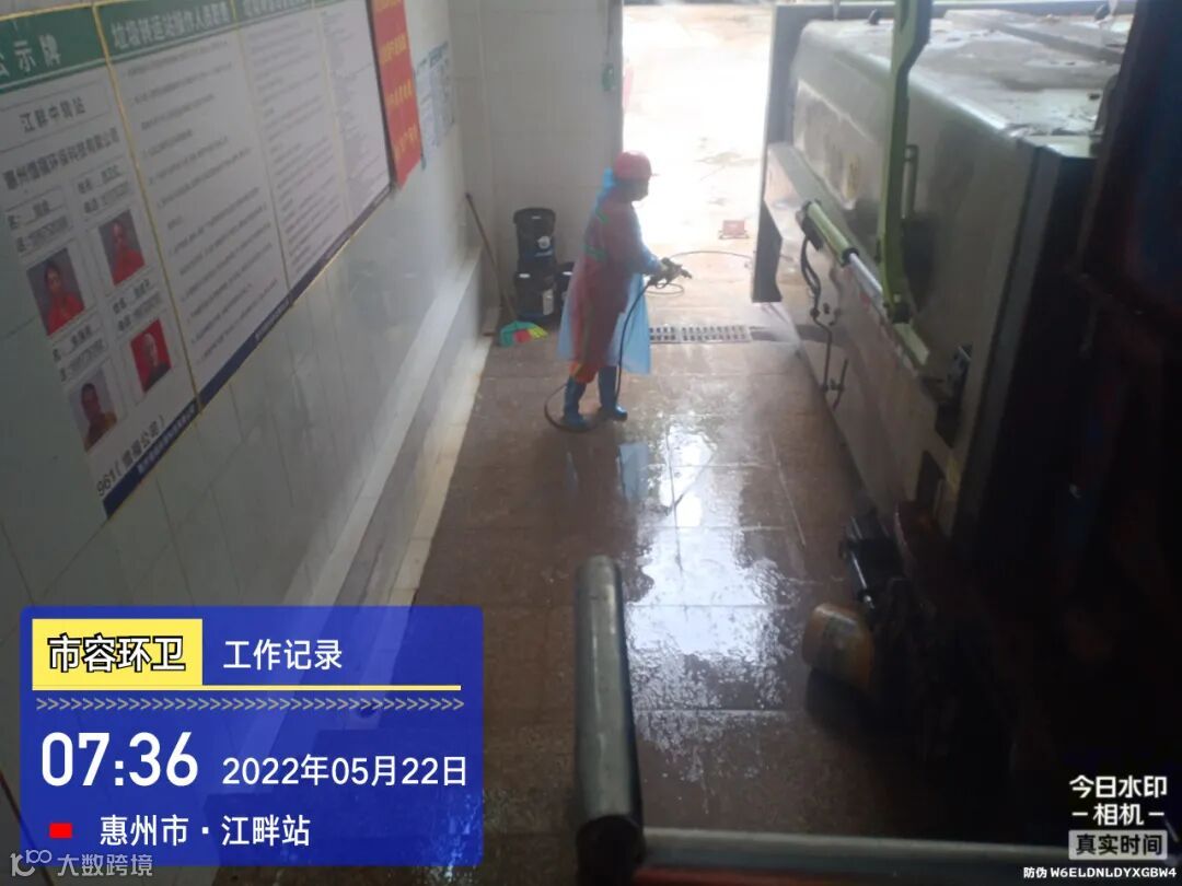 中转站/公厕日常作业及维护,每日两次以上高压冲洗并喷雾消毒站内外地面及箱体