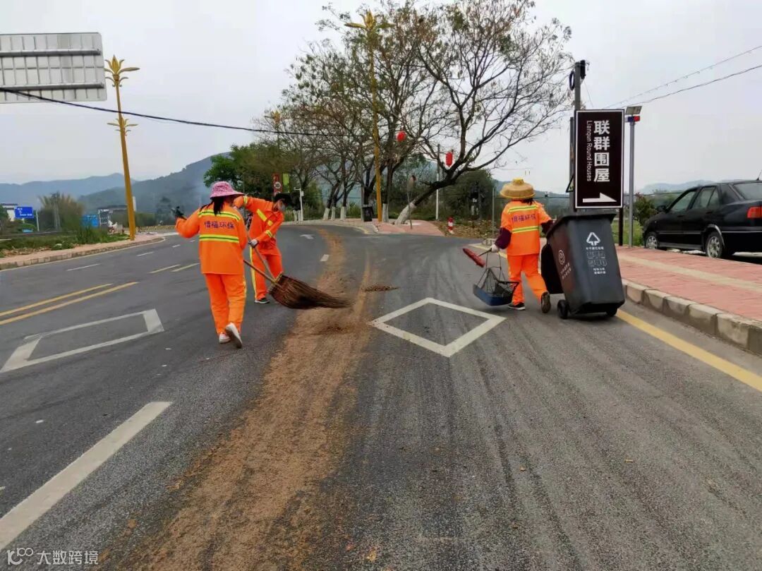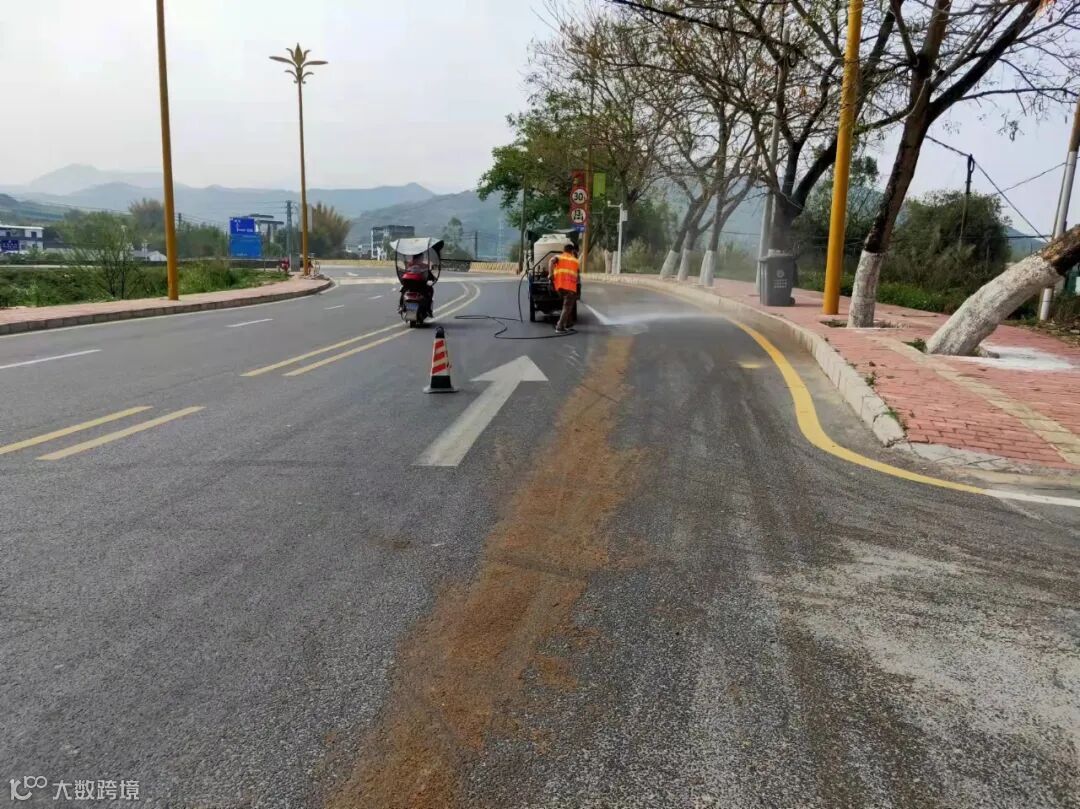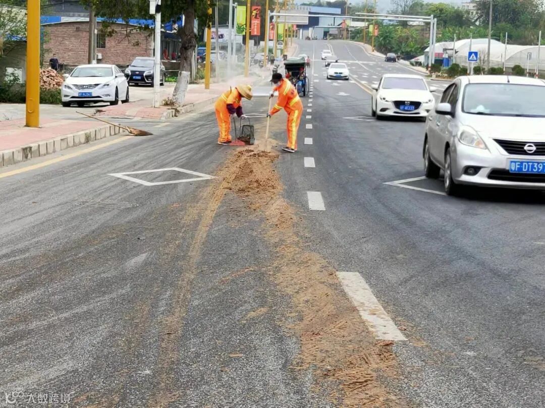 4、临时调派人员清理联群至江下桥段车辆大量散落油渣。