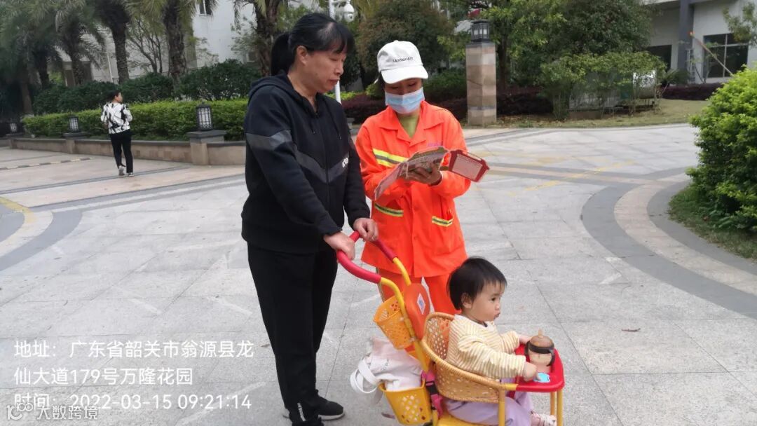 2、垃圾分类人员15号在万隆花园开展“2022文明健康绿色环保系列活动”及在各小区守点宣传。