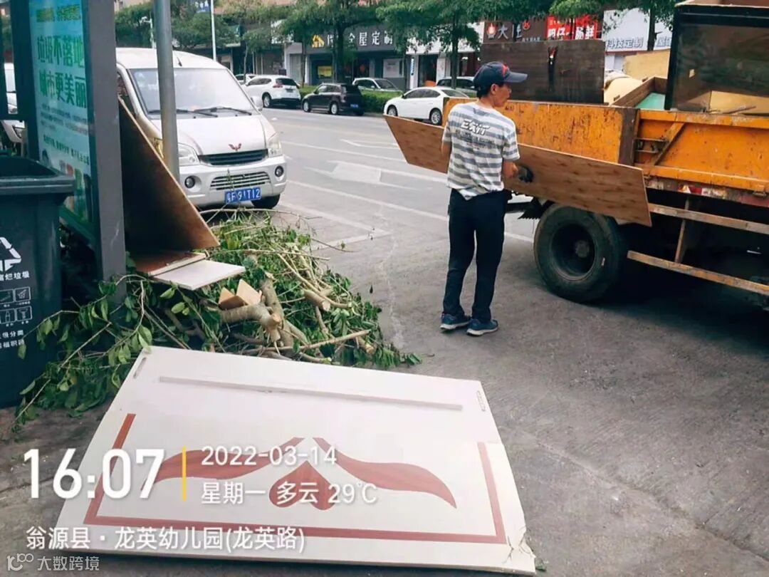 5、突击队清理大量大件废弃物、非生活垃圾(装修垃圾、树枝树叶)等,总重量约 269.36吨。