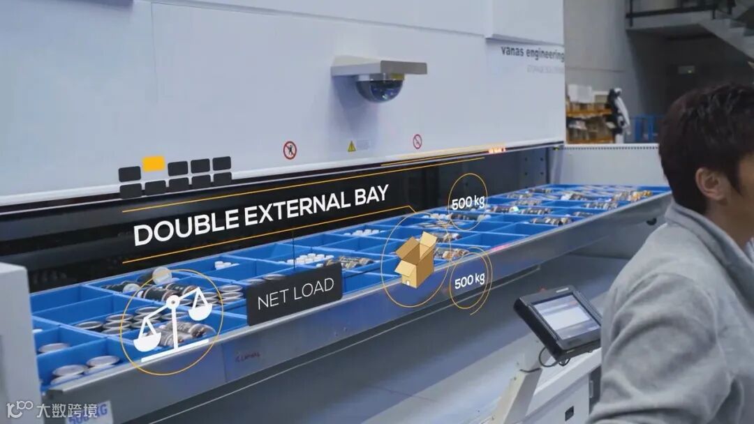 仓库员工从每天步行14公里,减少到1-2公里。所有产品存放在货柜里,员工只需站在货柜托盘口操作,即可完成订单的拣选。