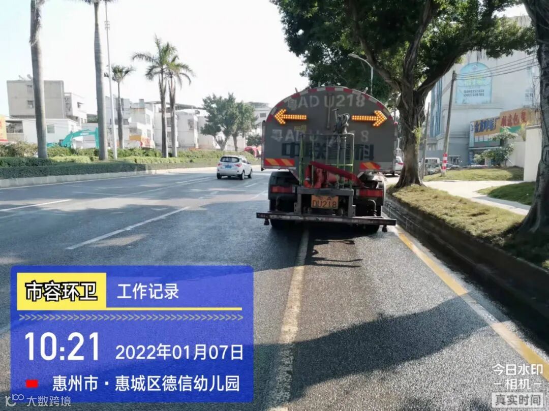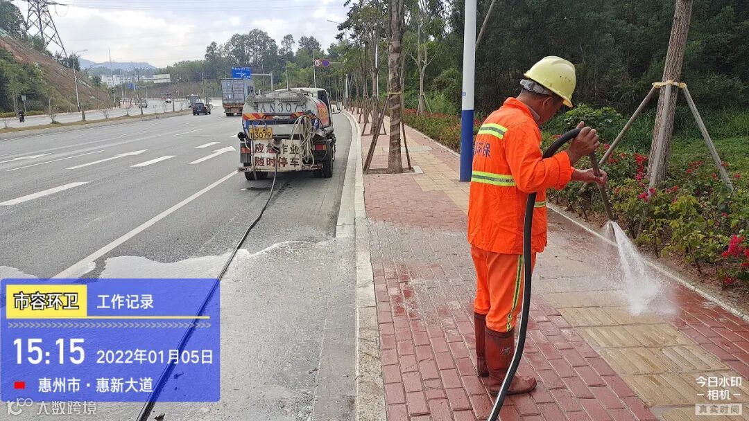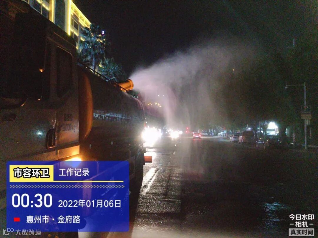 白天夜间常态化冲洗清扫辖区各路段及沿线喷雾洒水降尘作业