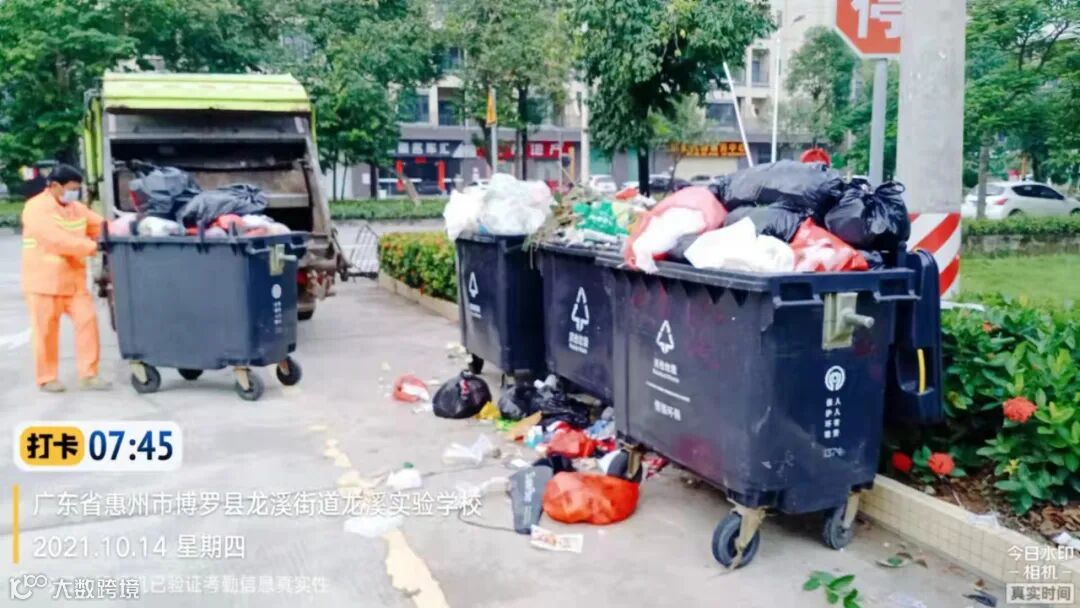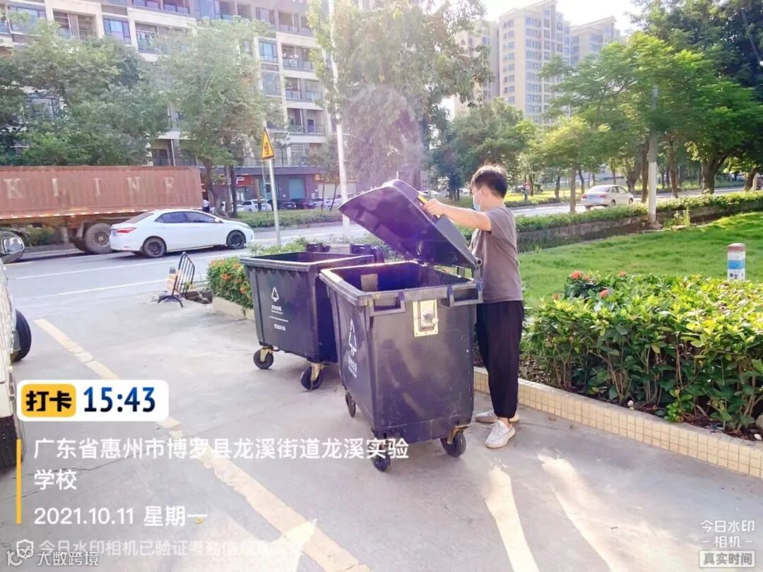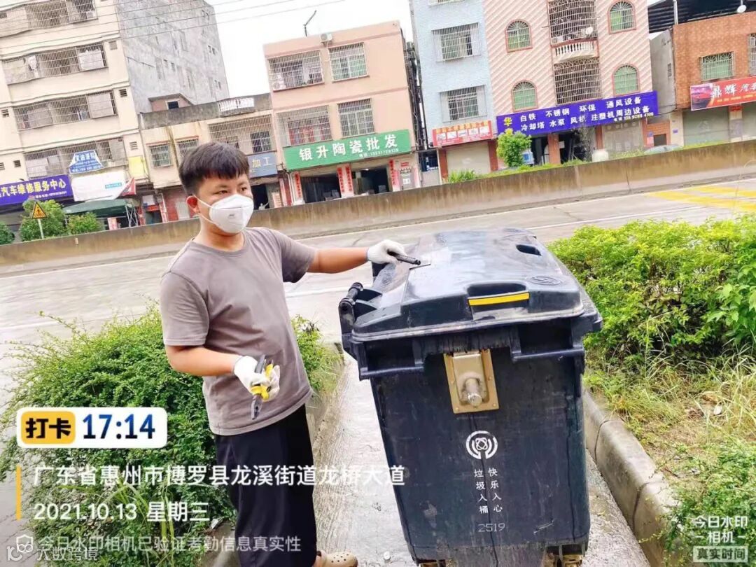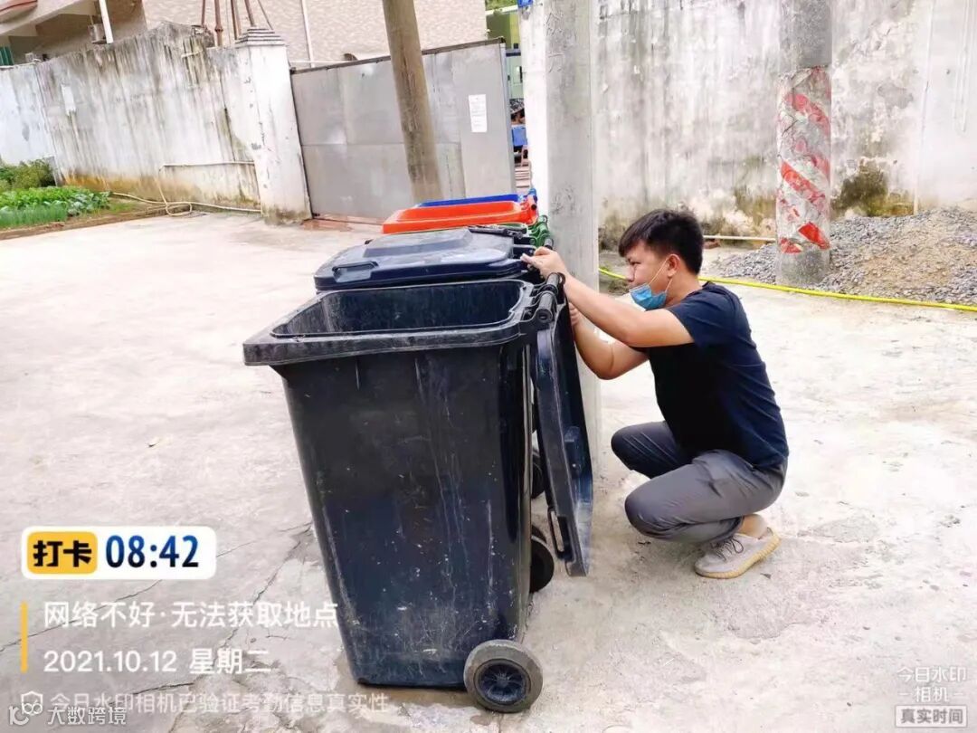 4、巡查各垃圾桶点,及时加盖并撤换坏桶。
