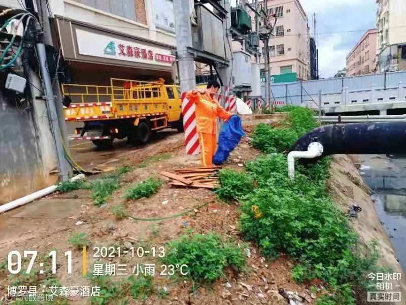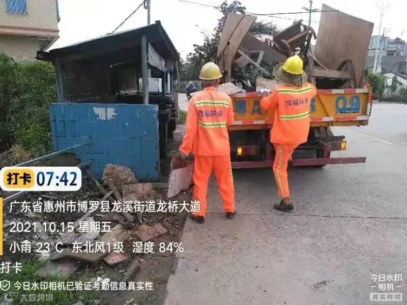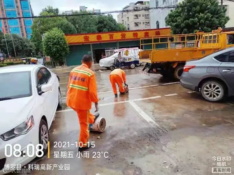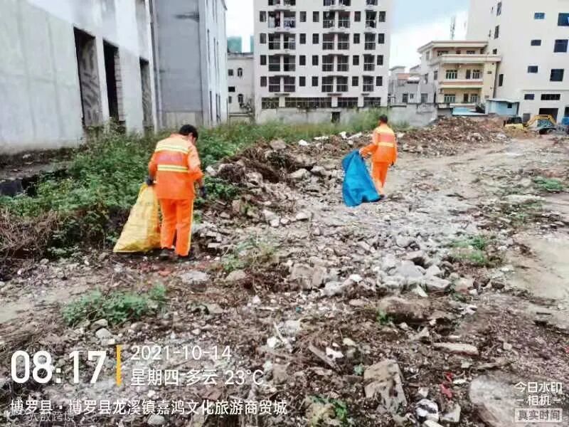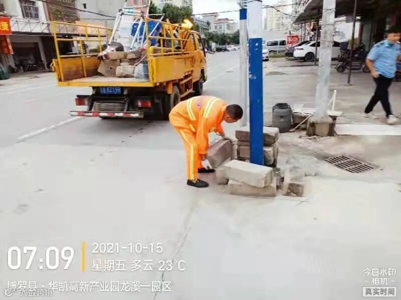 2、突击队和劝导队协同清理镇区零星砖头石块、雪糕筒、路边垃圾桶。