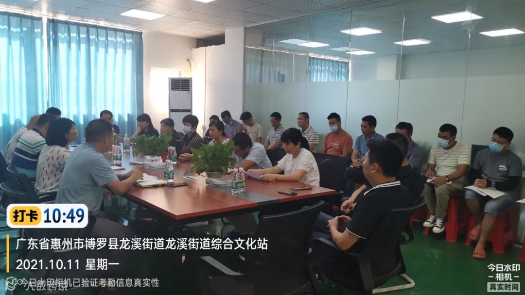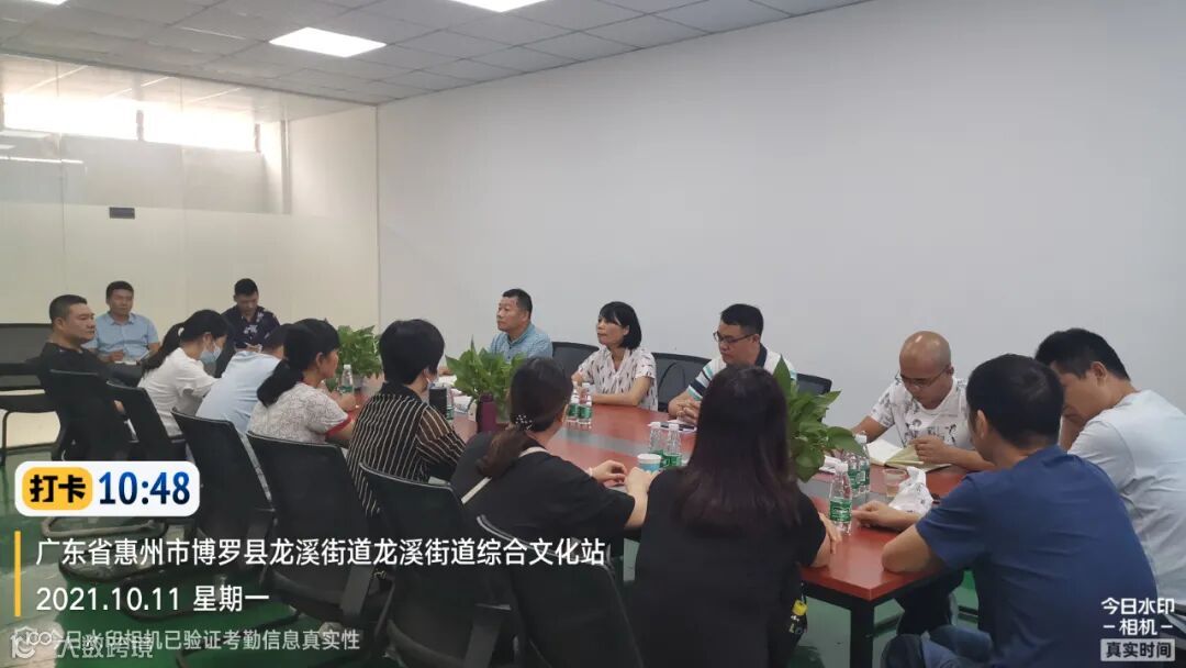 (县市容环境卫生事务中心叶局、工作组刘股及工作组成员、惜福公司靳总及龙溪项目管理人员召开创文国检工作推进会暨安全生产会议,几位领导作工作指示。)