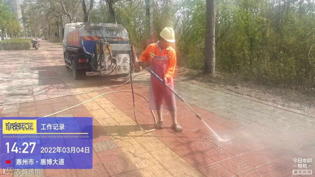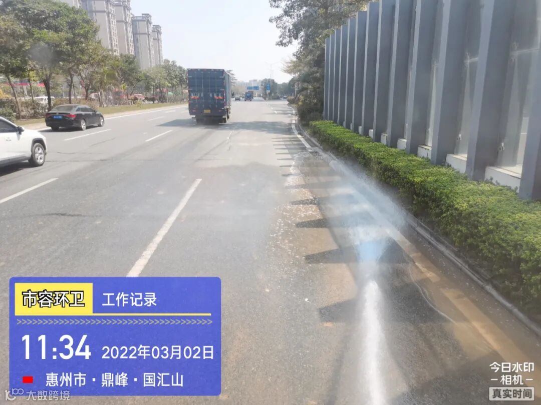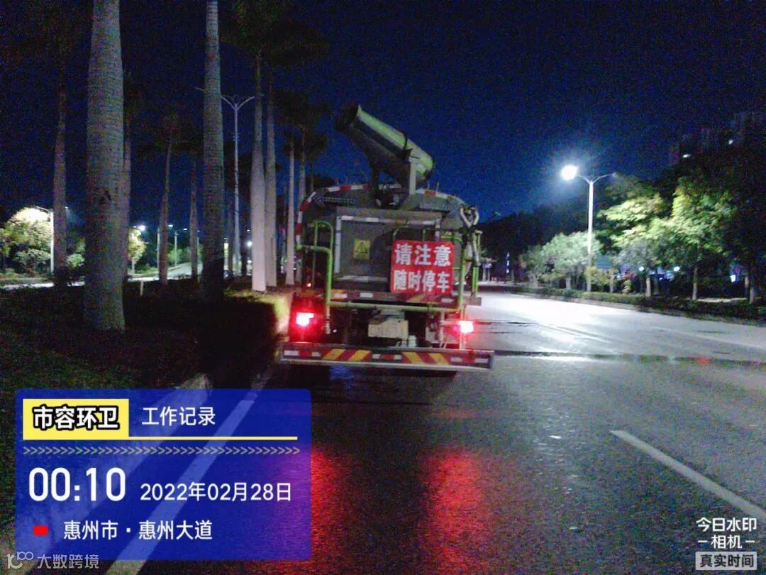 白天夜间常态化冲洗清扫辖区各路段及沿线喷雾洒水降尘作业