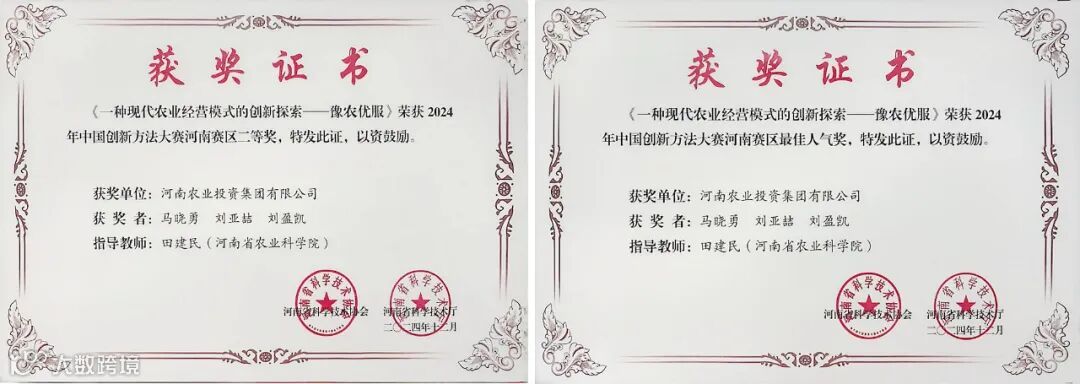 此次荣获两项殊荣不仅是对河南农投集团商业模式创新的高度认可,更提振了集团未来在农业领域创新发展的信心。河南农投集团将持续推动科技产业创新融合,着力培育农业领域新质生产力,让创新成为集团发展的鲜明底色。