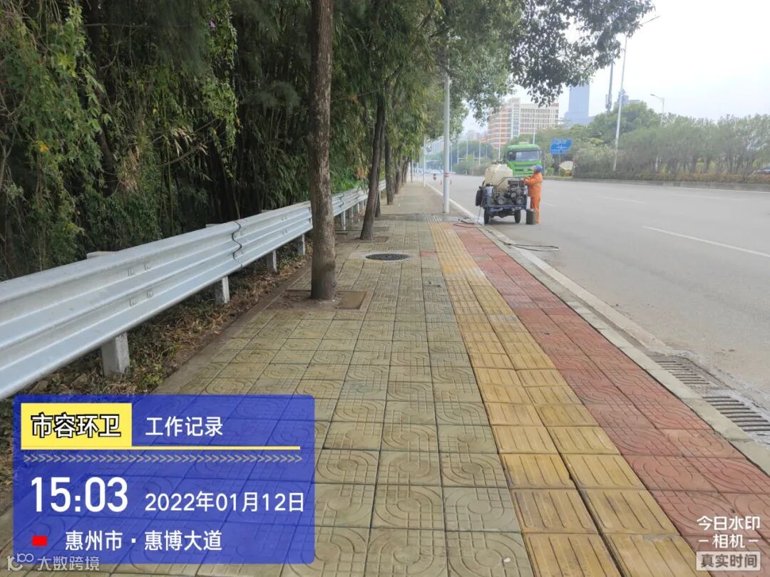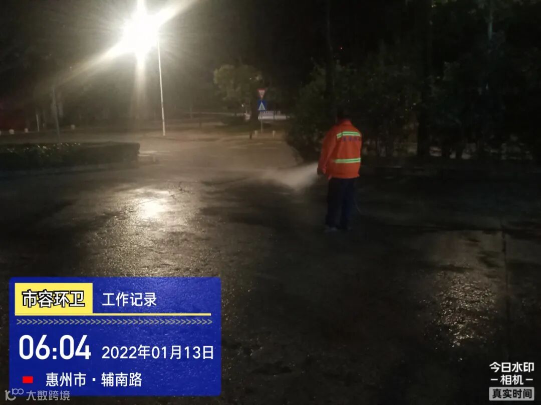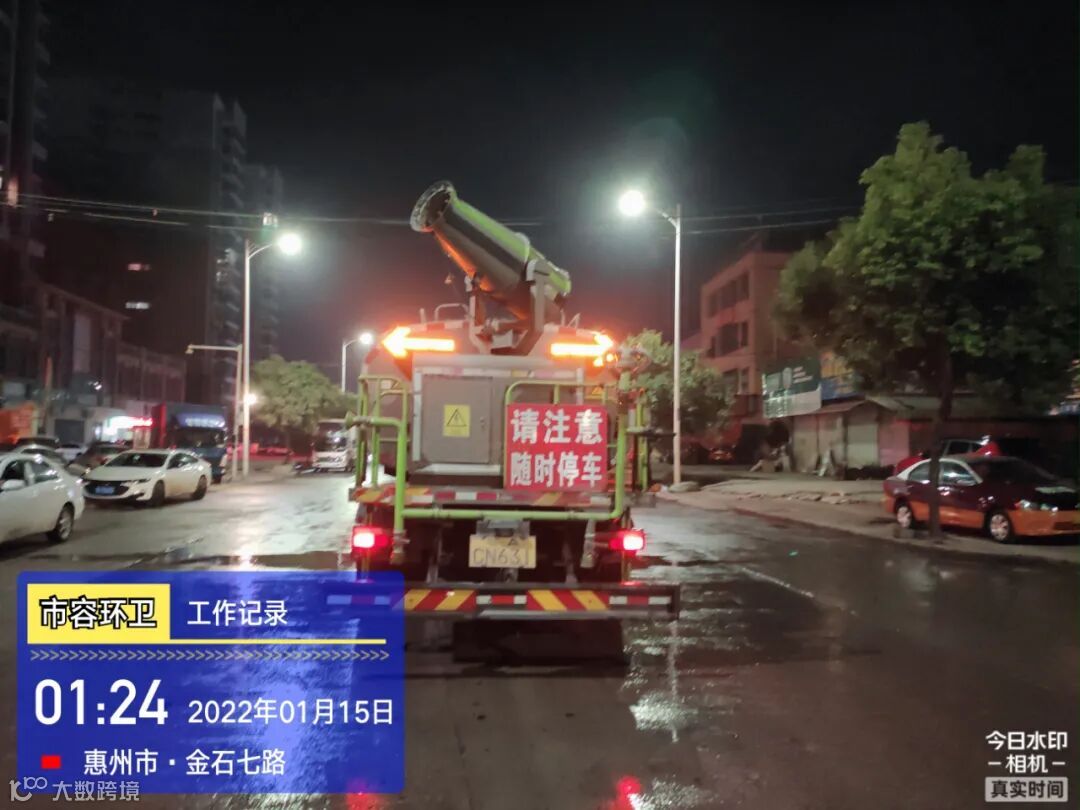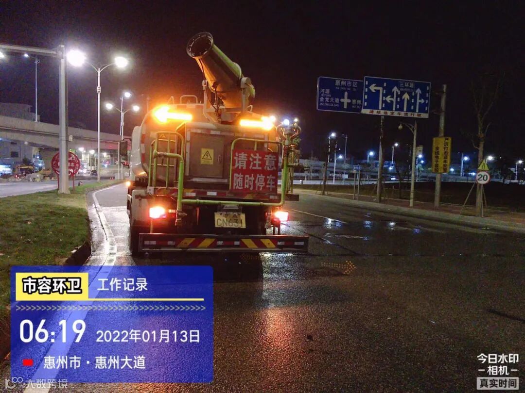 白天夜间常态化冲洗清扫辖区各路段及沿线喷雾洒水降尘作业