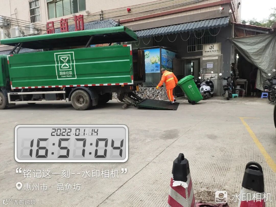 4、惠城示范片区厨余垃圾正常收运处理,跟进新劝导水口1家餐饮单位厨余垃圾后期收运准备工作;