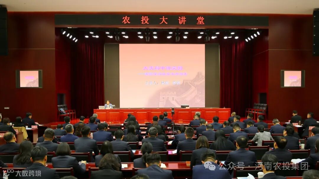 3月6日下午,河南农投集团举办2024年第二期(总第12期)“农投大讲堂”,邀请中国政法大学林乾教授以《大变局中谋突围——兼谈华为以奋斗者为本》为题授课。讲座由集团党委副书记王花荣主持,集团领导班子成员、总部全体职工,在郑二级子公司班子成员、三级子公司主要负责人及部分员工代表在现场聆听讲座,各子公司开设视频分会场。