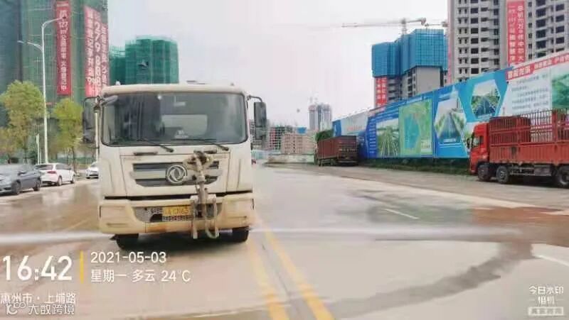 2、水车、雾炮车配合龙溪街道部门扬尘管控应急应对方案,积极做好洒水降尘工作。