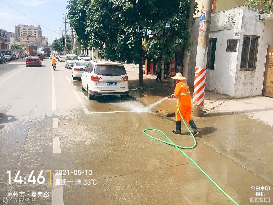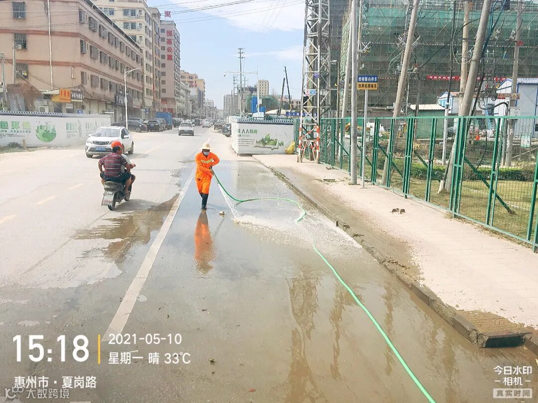 1、加强路面洒水降尘,做好各路段常态保洁。