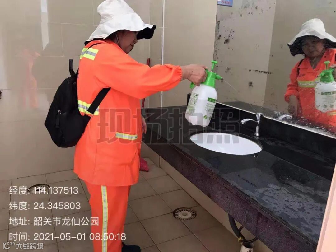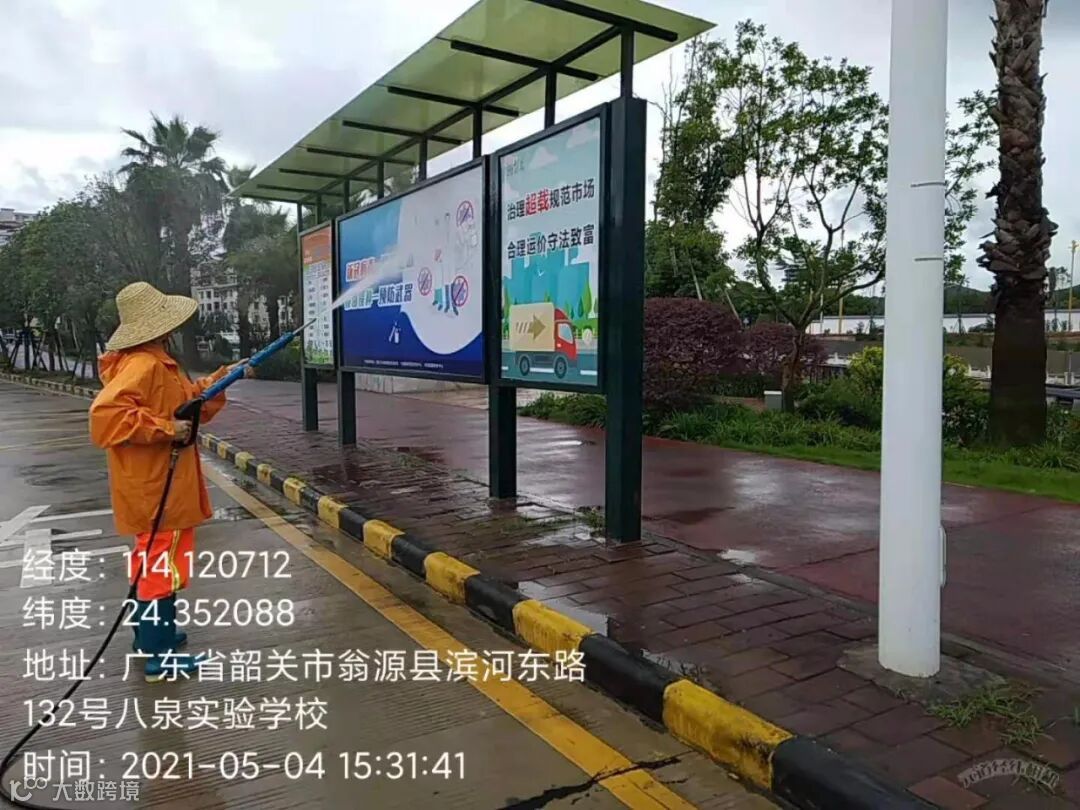 5、坚持做好公厕、垃圾桶、人行道、公共场所、公益广告、环卫公共设施等的冲洗及消毒。