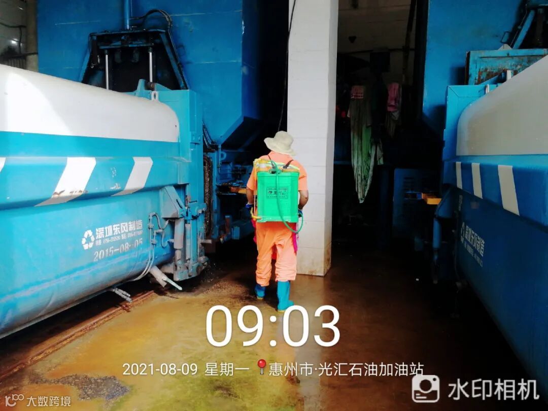 中转站/公厕日常作业及维护,每日两次以上高压冲洗并喷雾消毒站内外地面及箱体