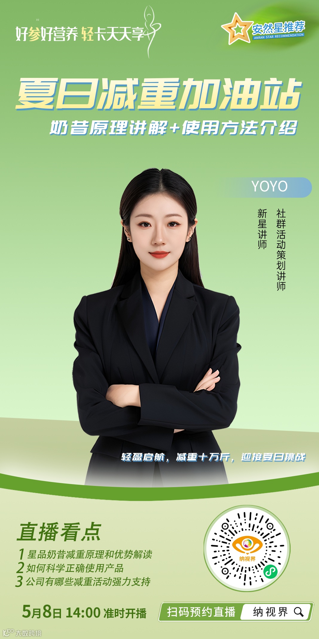本期安然星推荐直播,业务培训新星讲师、社群活动策划讲师yoyo化身星荐官,带来奶昔的新品加油站,为您解读产品原理、介绍科学使用方法!