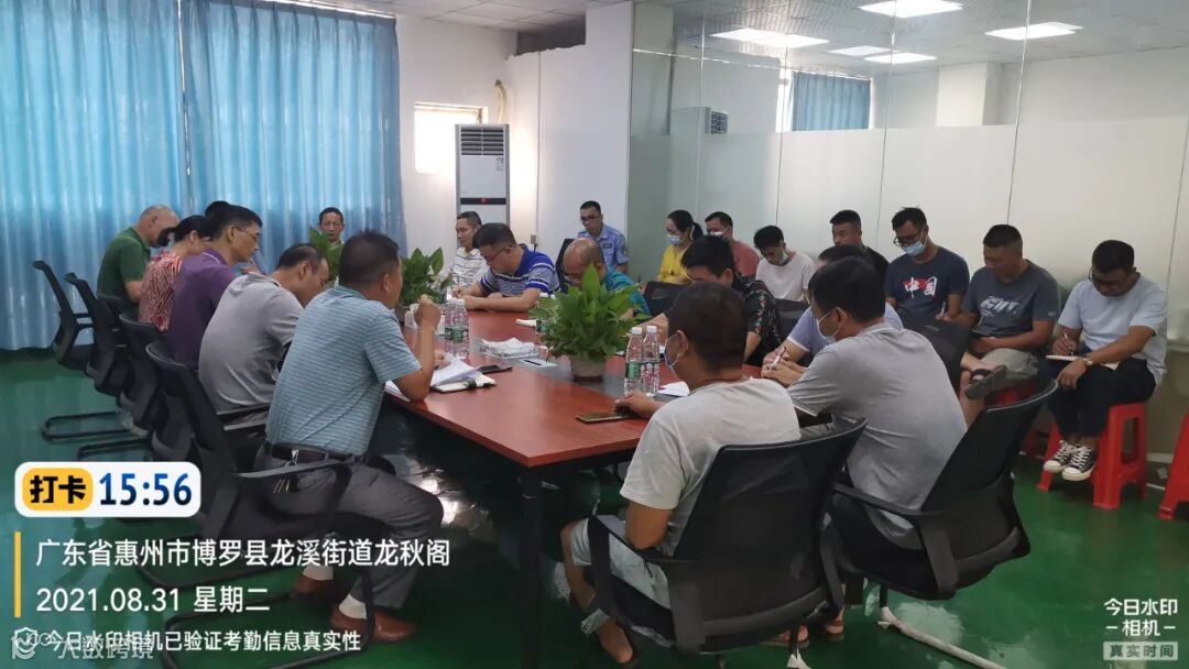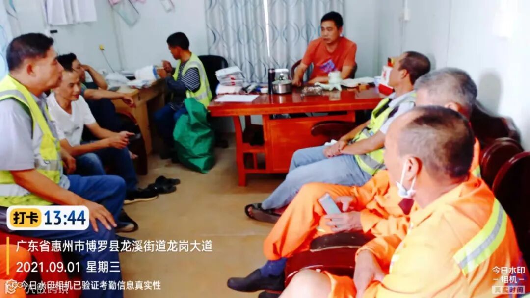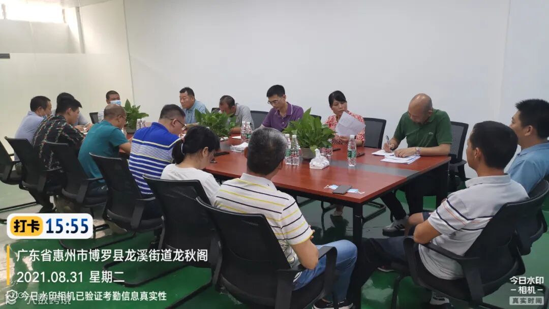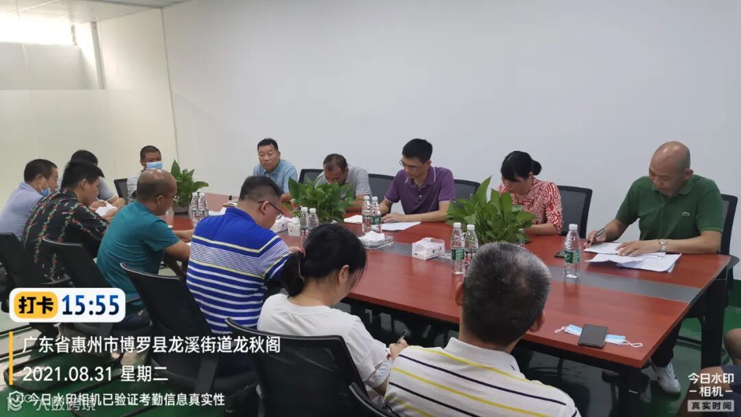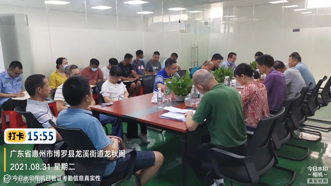 (县市容环境卫生事务中心陈局、叶局、街道办梁主任、环卫公司梁经理、工作组刘股及工作组成员、惜福公司靳总及龙溪项目管理人员召开迎创文国检推进会,几位领导作工作指示)