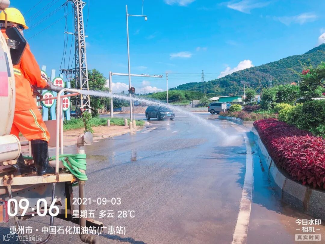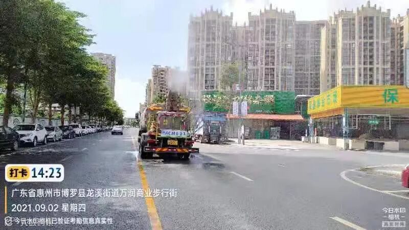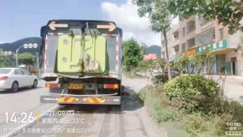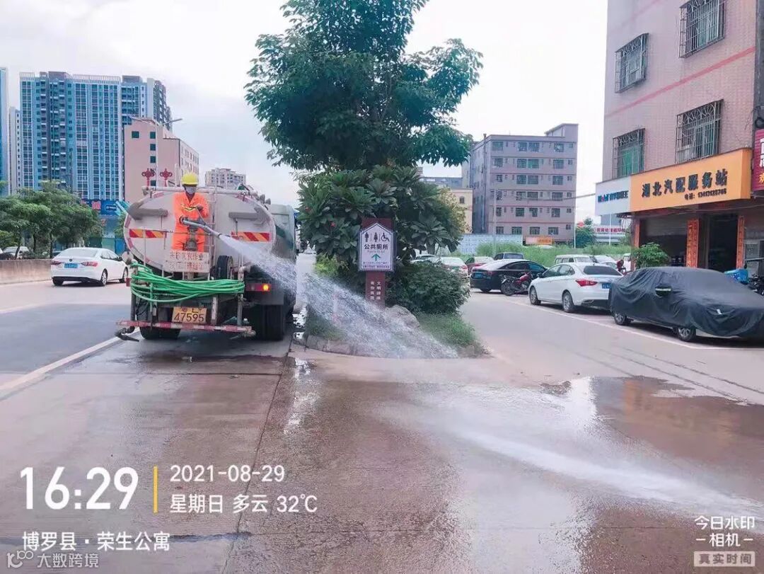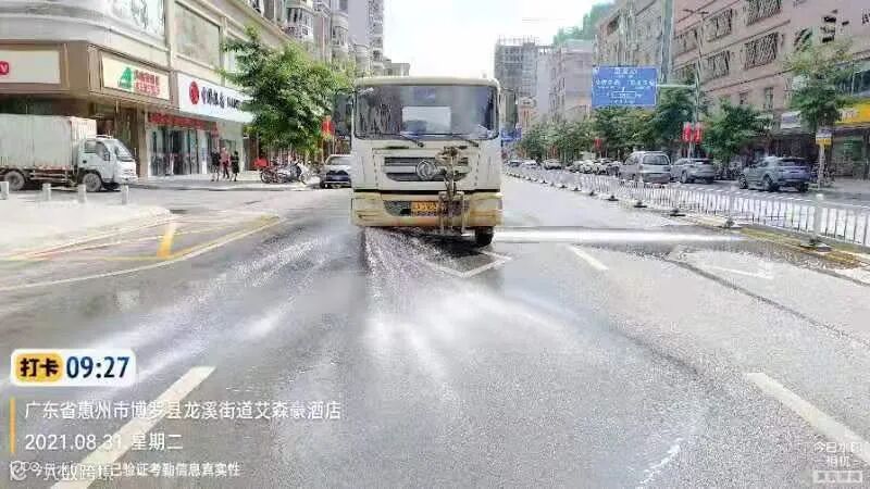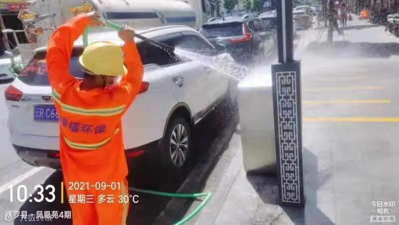 3、加强冲洗街道中心区主干路、人行道、桶点、果皮箱及护栏、广告牌等公共设施。