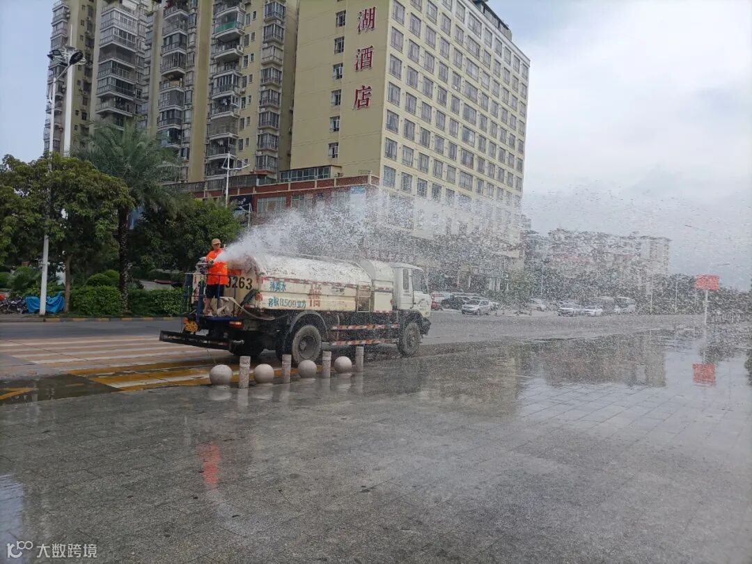 3、做好迎接市卫检查组到来准备工作:全面对所有高速路进出口、龙湖广场、龙湖绿道、翁江绿道、新旧城区中间护栏进行冲洗。