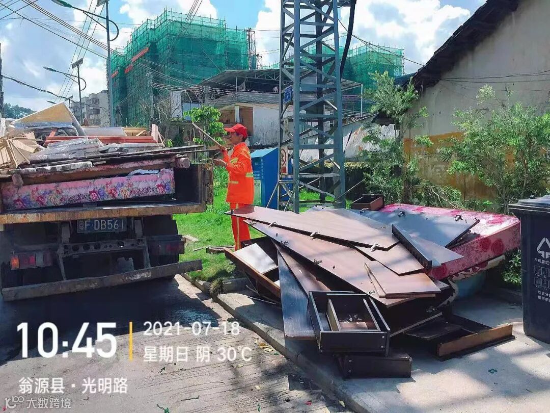 6、突击队清理大量大件废弃物、非生活垃圾(装修垃圾、树枝树叶)等,总重量约132.62吨。