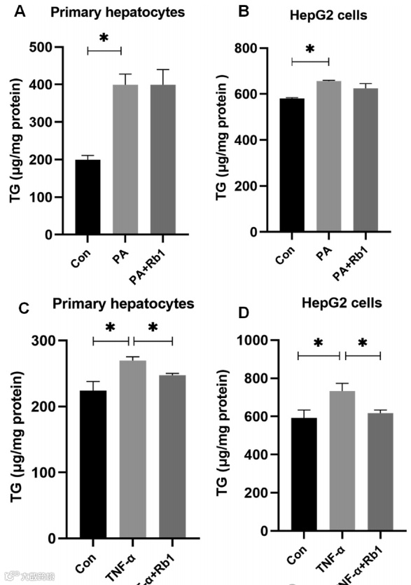人参皂苷Rb1对原代肝细胞和HepG2细胞的TG积累的影响