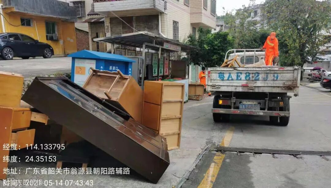 5、突击队三台大件车辆每天正常2次清捡县城及各乡镇,废弃杂物。