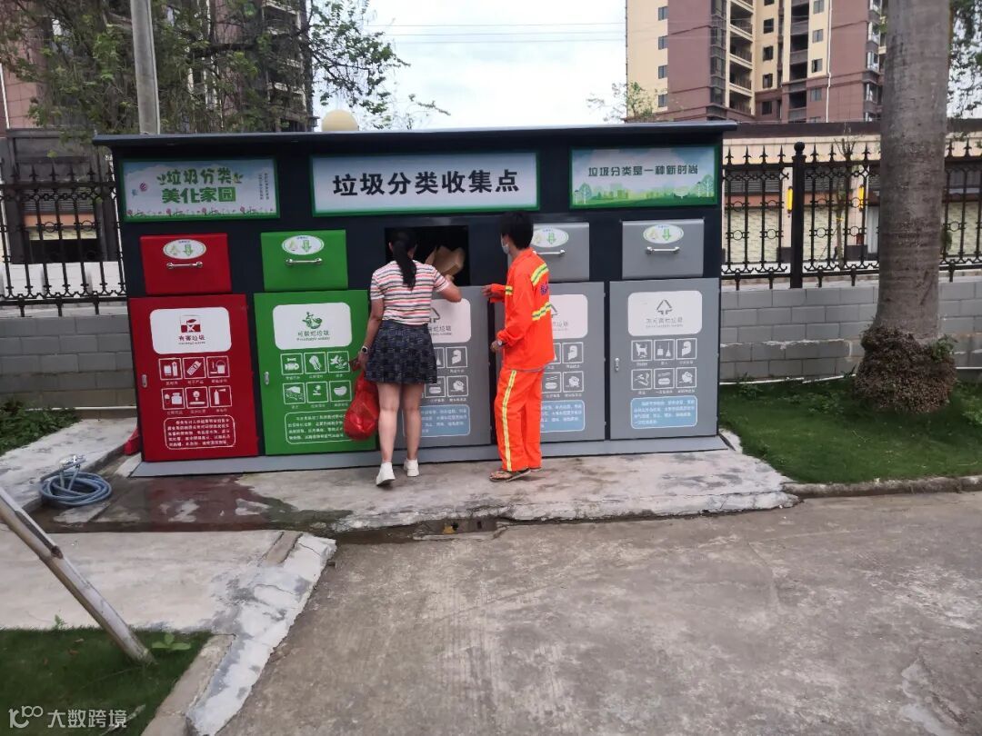 3、劝导员与湘满楼厨余沟通干湿分离及收运并做好各试点小区守点宣传。