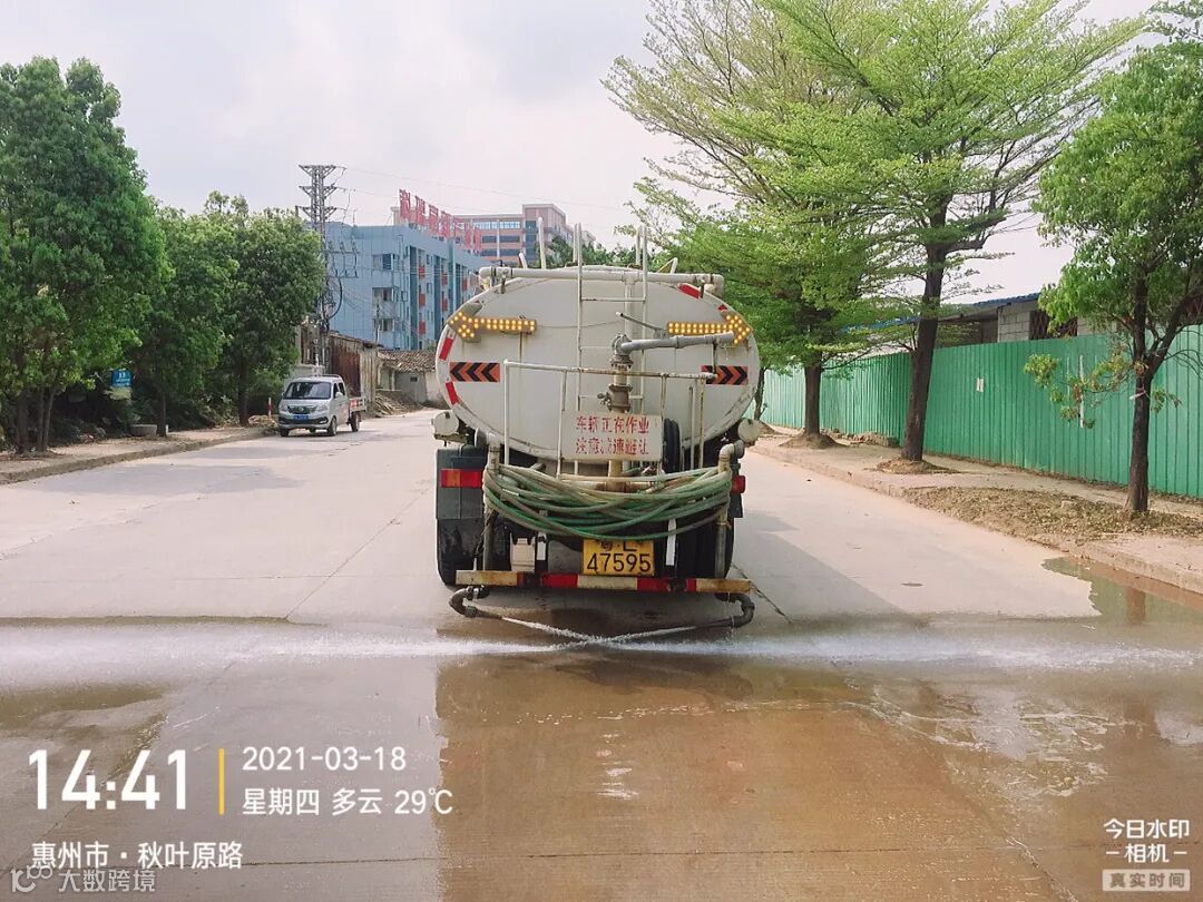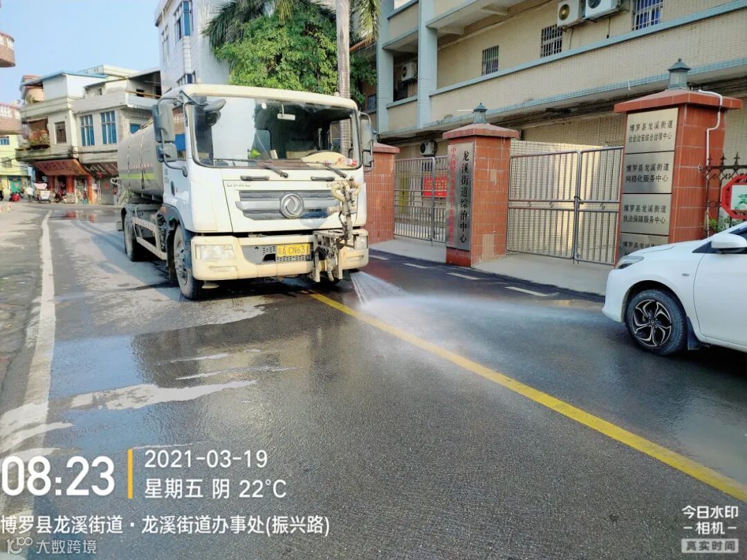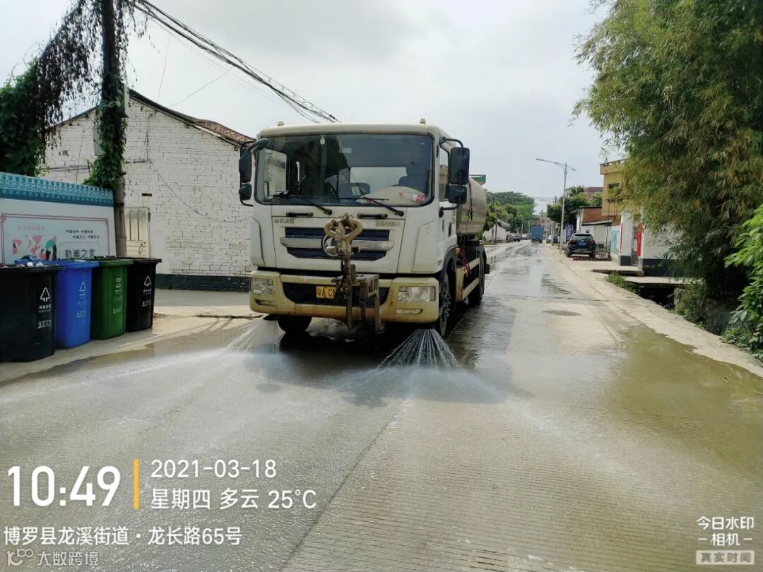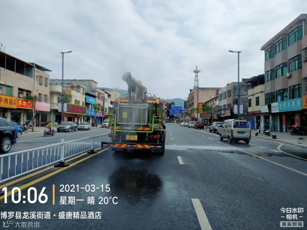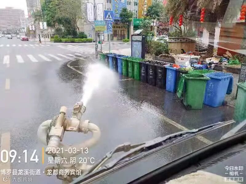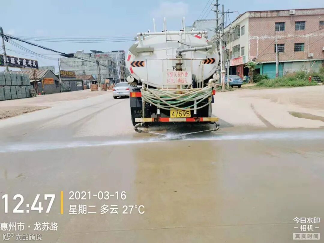 4、洒水车、扫路车、雾炮车加大国控点周边、各主要村道的洒水冲洗力度,并文明作业。