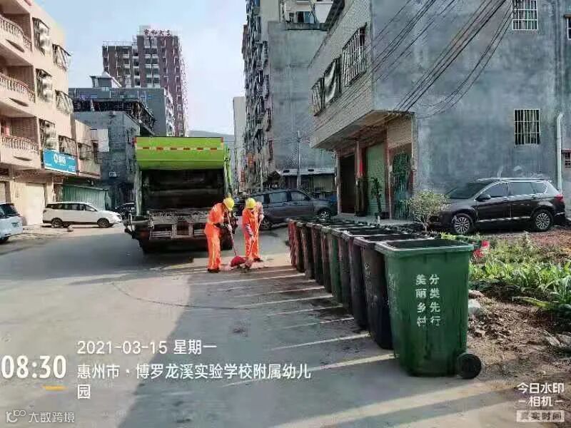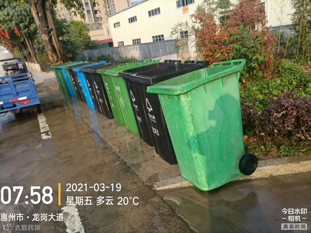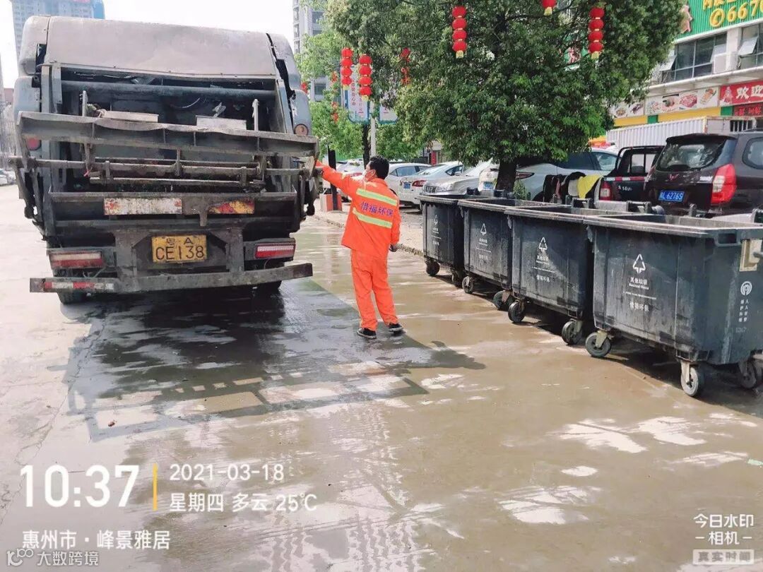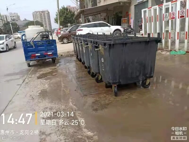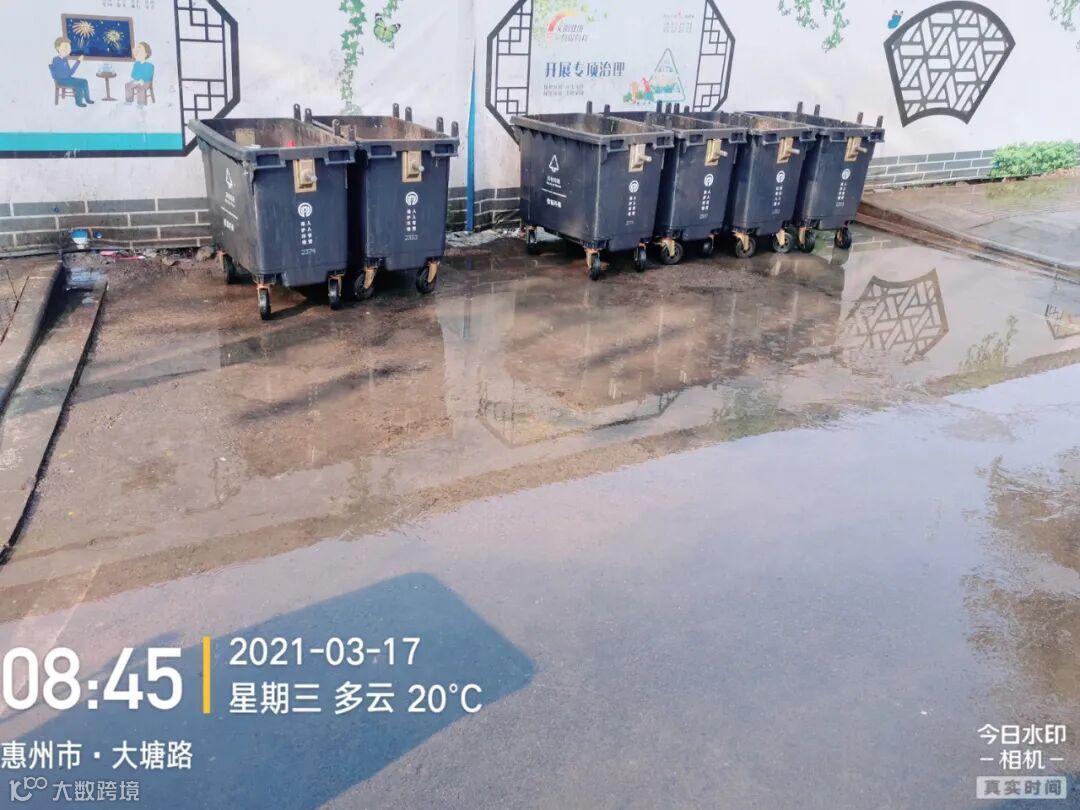 3、增加垃圾清运频次,垃圾不落地;桶点周边要整洁,垃圾桶点统一摆放,正面对外,桶点踩刹。